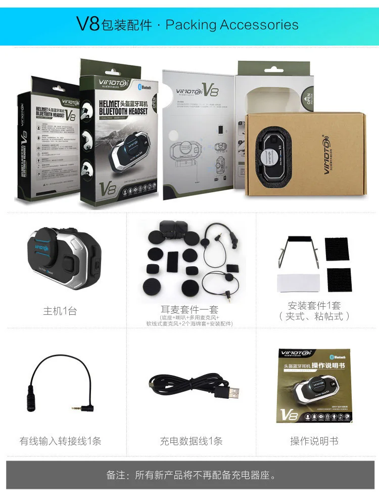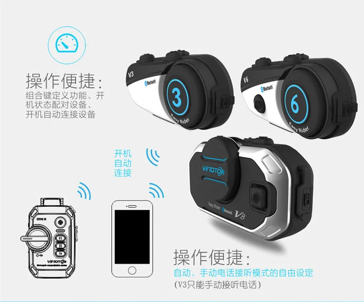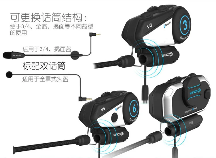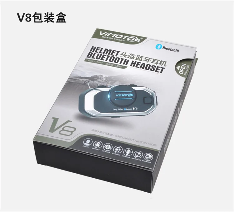 名称: 头盔蓝牙耳机 前后座对讲机品牌: 维迈通货号: V8规格: русский (语音播报 + 说明书)/英文(语音播报 + 说明书)可选电池容量:850 мА-ч同系列可选款式:V3 / V6