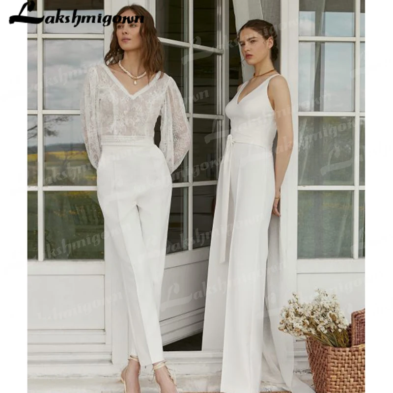 Женские простые комбинезоны, свадебные платья 2022 с карманами, комбинезон для невесты, для приема, свадебные брючные костюмы, платье для невесты, новинка