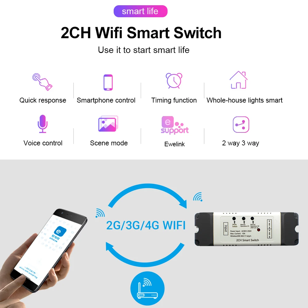 1. Поддерживает сеть Wi-Fi, удаленно включать или выключать подключенное устройство/светильник;2. Поддерживает отслеживание состояния: Статус устройства своевременно предоставляется «EWeLink»;3. Поддерживает максимум 8 включенных таймеров по расписанию/обратному отсчету/циклу для каждого устройства;4. Поддерживает многочисленные WiFi смарт-переключатели на одном смартфоне;5. Работает с Amazon Echo, Echo Dot, Amazon Tap;6. Работает с Google Home и Google Nest.