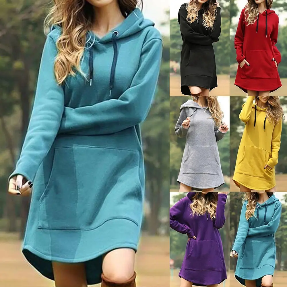 Новинка, женское платье с капюшоном, Повседневный пуловер с карманами и длинным рукавом, свитшоты, женская модная одежда с капюшоном на осень и зиму, Прямая поставка