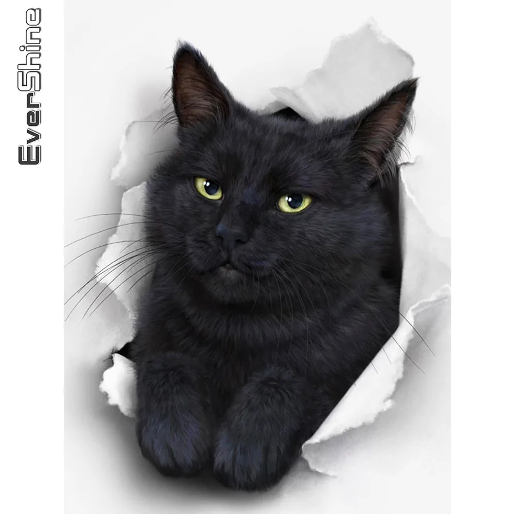 Evershine Алмазная вышивка с изображением черной кошки стразы, алмазная живопись, животные, набор для мозаики 5D, сделай сам, подарок ручной работы