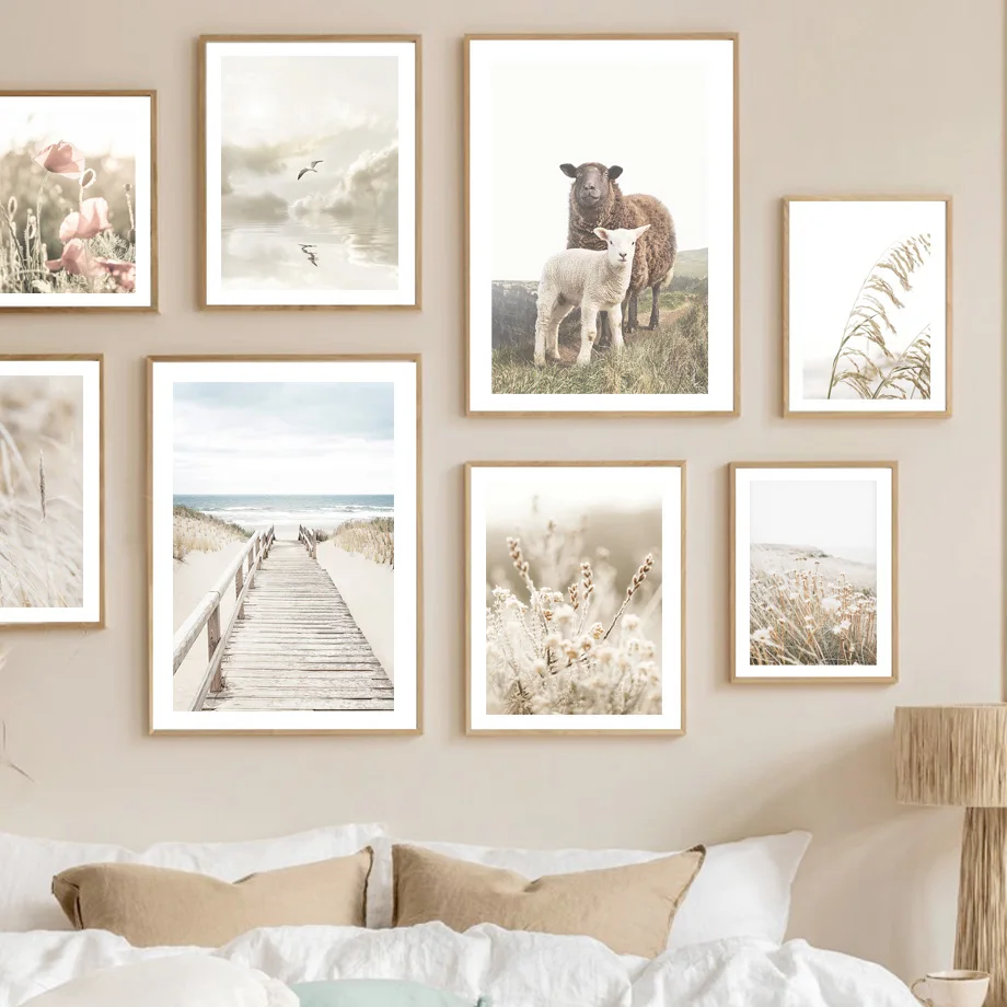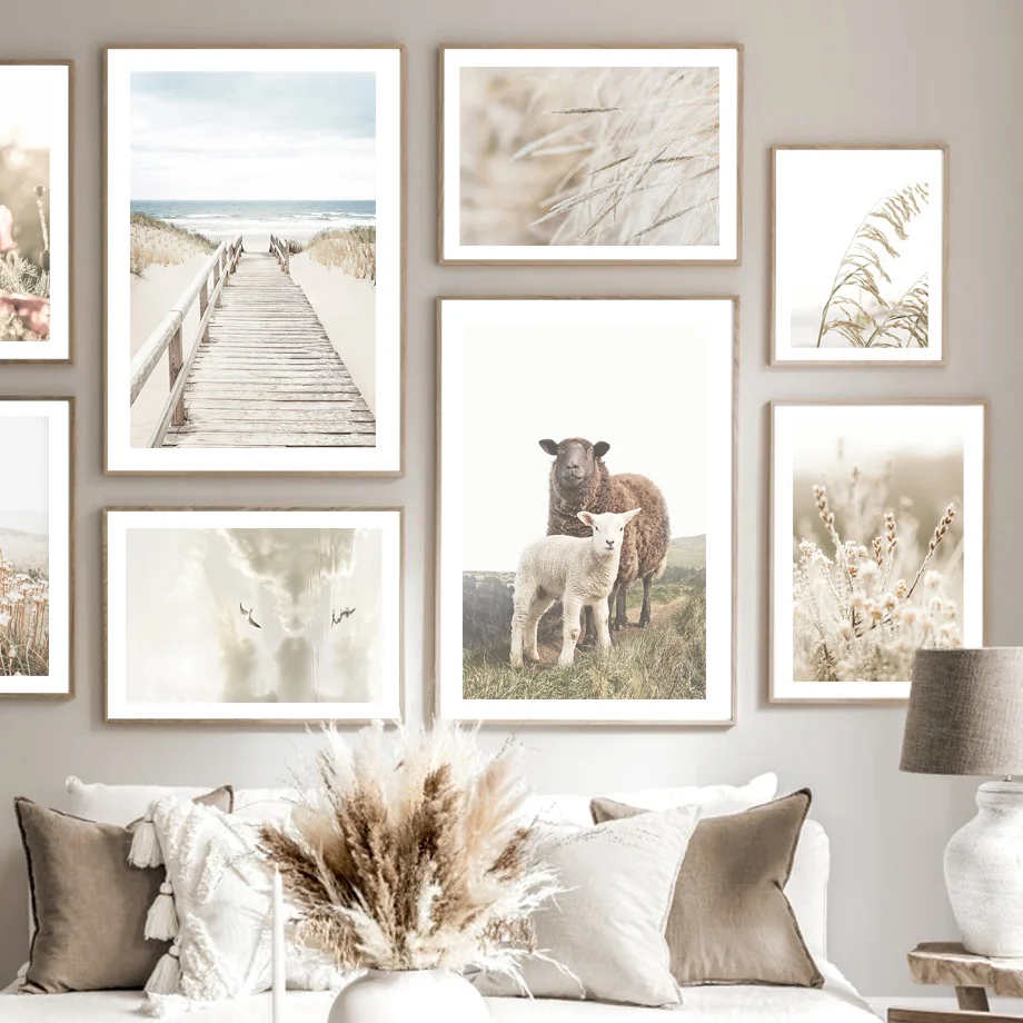 Птица в небе, пляжный мост, цветок, тростниковая трава, овца, настенная живопись, холст, картина, скандинавский постер, Декор, фотографии для гостиной