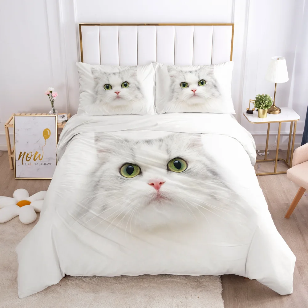 Комплект постельного белья для собак и кошек, с 3D рисунком, белый комплект пододеяльника и пододеяльника, одеяло, постельное белье, наволочка, размер King, Queen, 140*210 см
