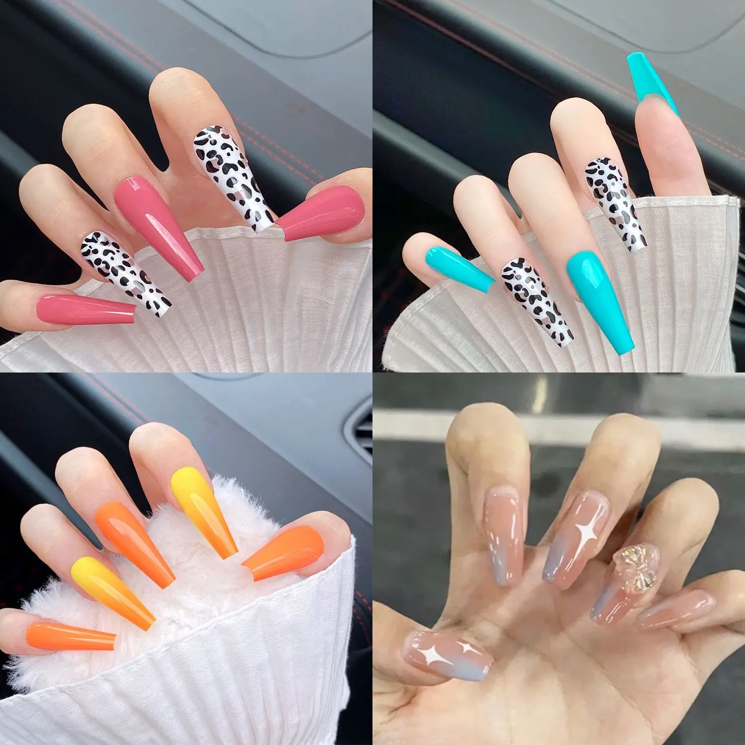Новые съемные накладные ногти в форме французского гроба леопардовые накладные ногти с полным покрытием накладные ногти 24 шт.кор.