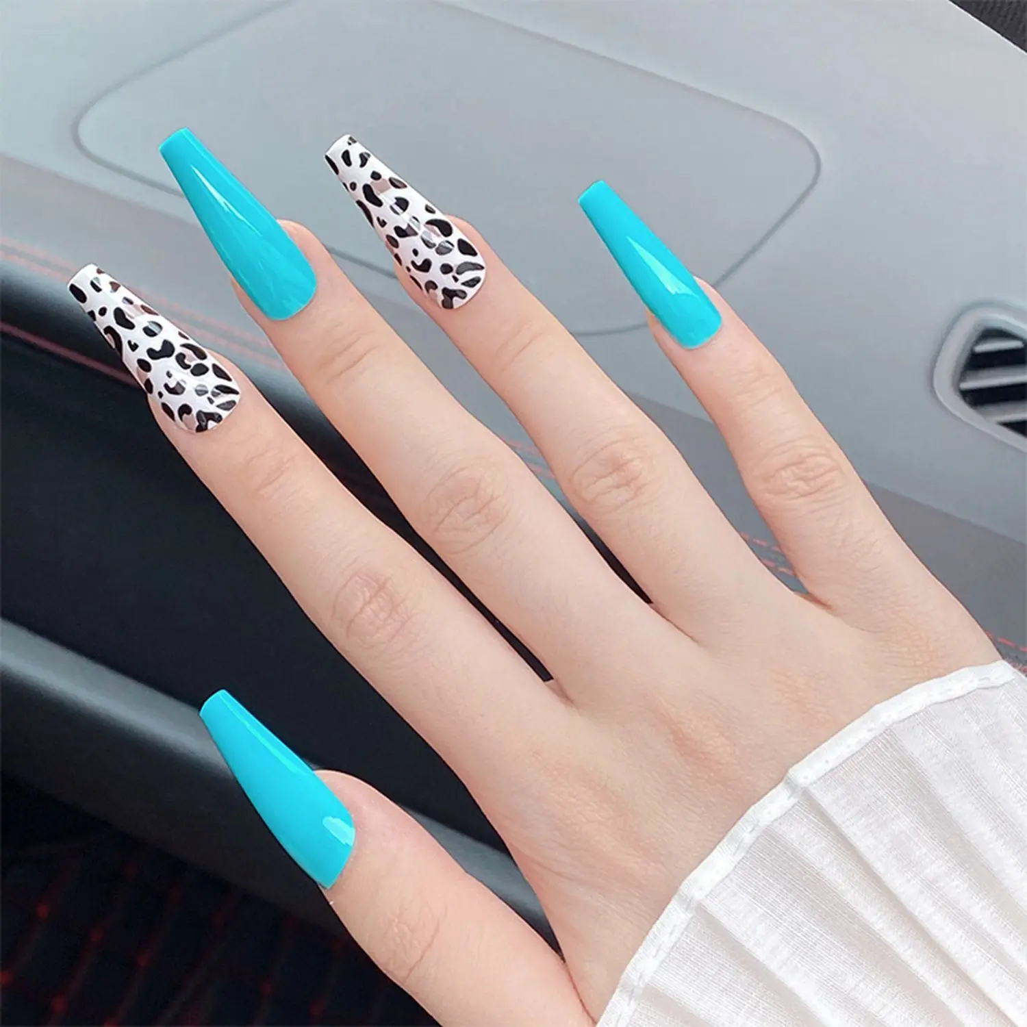 24 шт.кор. сверхдлинные черные леопардовые накладные ногти леопардо...
