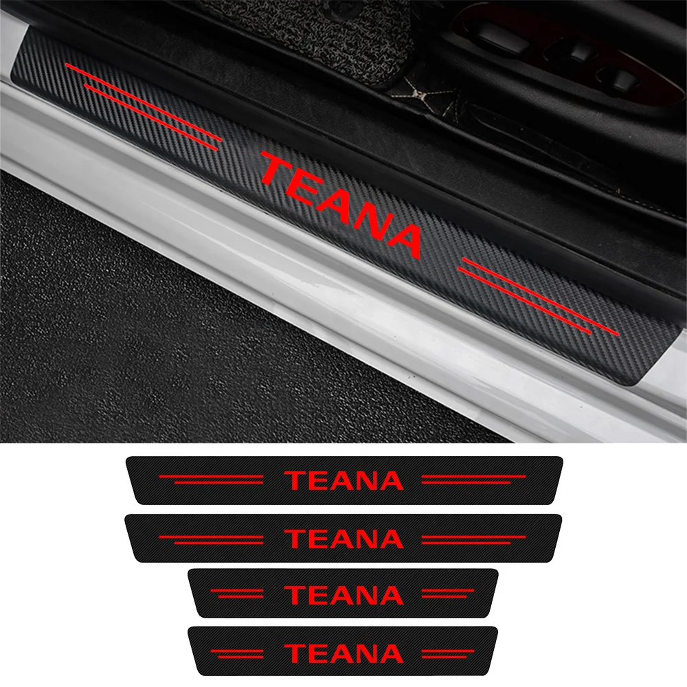 4 шт., красные наклейки на порог автомобильной двери из углеродного...