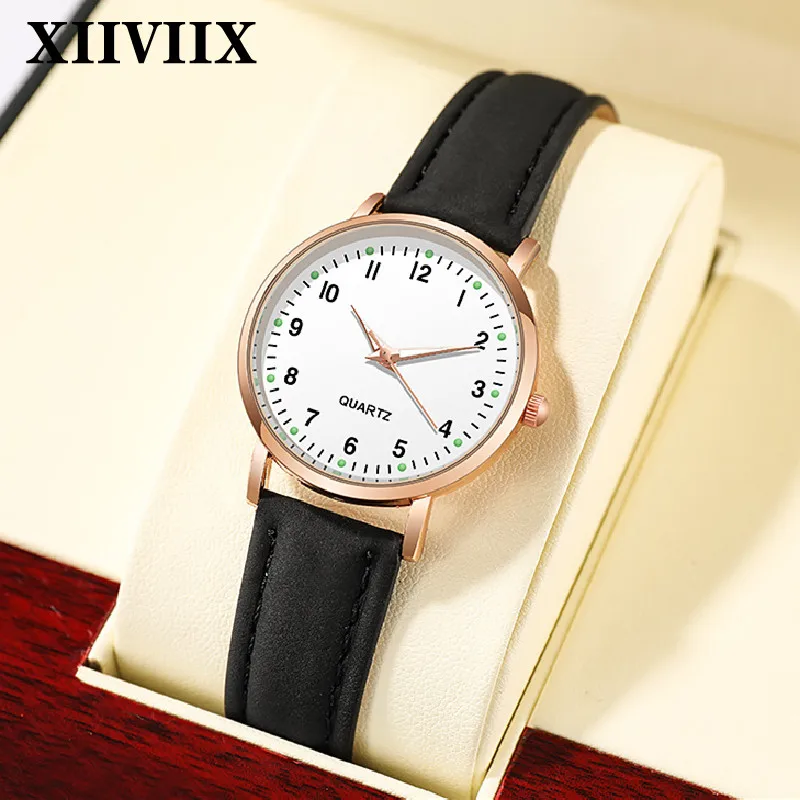 Женские кварцевые часы XIIVIIX, женские цифровые винтажные часы с матовым ремешком, модные светящиеся наручные часы в корейском деловом стиле