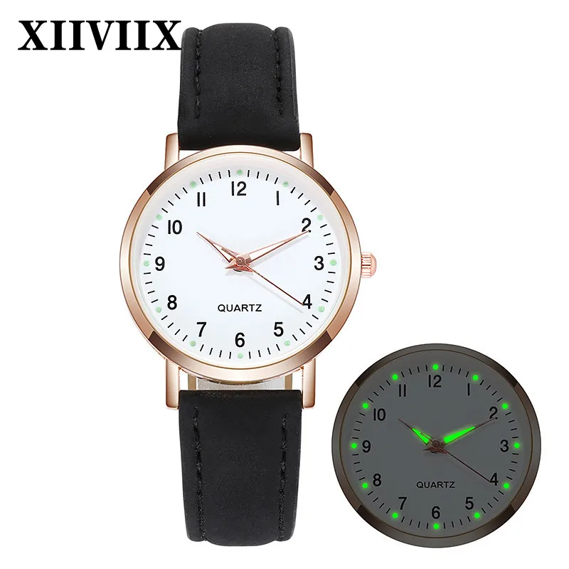 Часы наручные женские кварцевые, светящиеся с арабскими цифрами, ро...