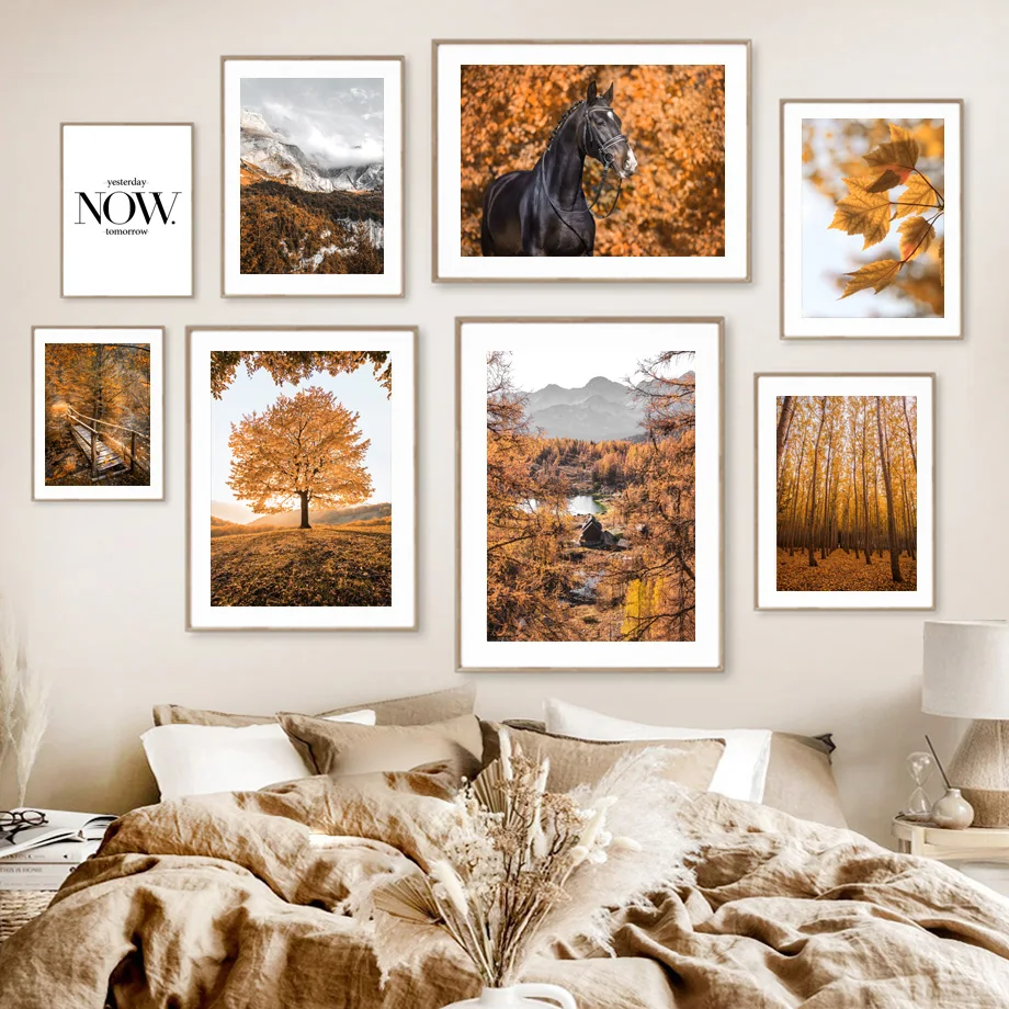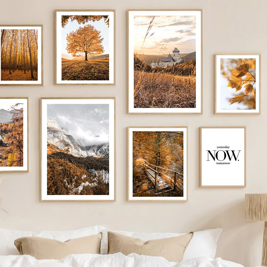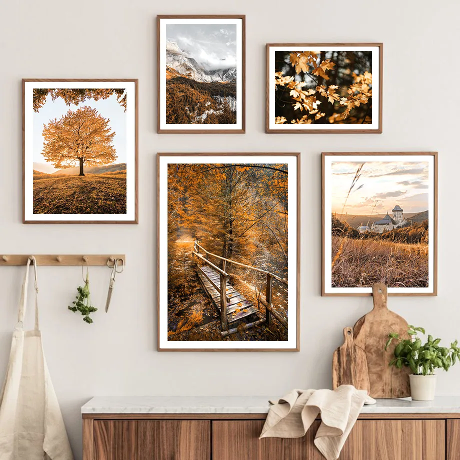 Картина на холсте с изображением гор, водопада, леса, осенних листь...