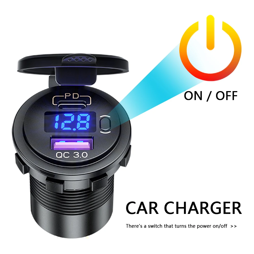 PD Тип C USB переключатель автомобильного зарядного устройства QC 3...