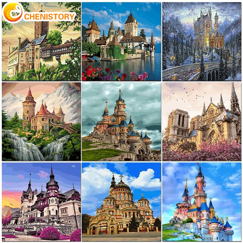 Картины CHENISTORY сделай сам по номеру, замок, ландшафт, искусство, ручная роспись, город, рисунок на холсте, домашний декор, художественный подарок icon star icon star icon star icon star icon star