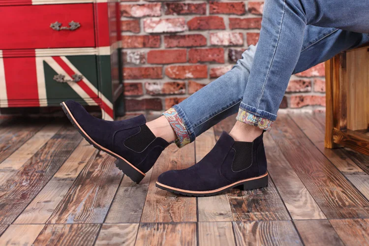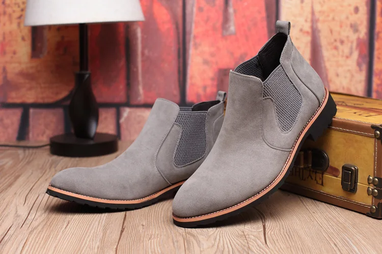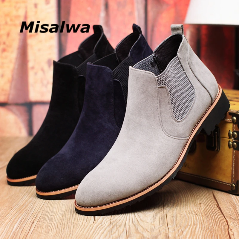 Misalwa элегантные мужские ботинки челси весенние броги повседневные ботинки из искусственной замши с острым носком британские мужские ботинки до щиколотки