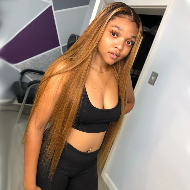 Парик Омбре медово-коричневый, длинный прямой коричневый парик, предварительно выщипанные парики из человеческих волос для женщин, имбирный коричневый парик на сетке, плотность 180%