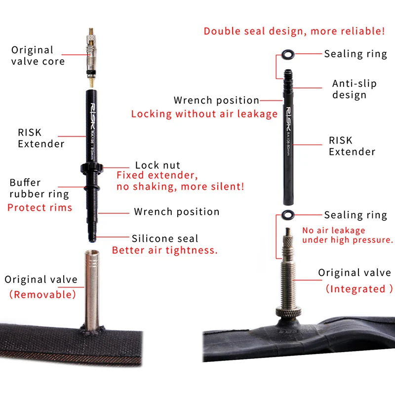 Съемной конструкцииОригинальный сердечник клапанаРиска удлинитель для головокФиксатор фиксированной гайки, не трясется, более бесшумный!Буферное резиновое кольцо-защитные ободаКлюч, дюймовый стандарт позицииСиликоновое уплотнение-лучшая герметичность.Оригинальный клапан(Съемный) Интегрированная структураУплотнительное кольцоПротивоскользящая конструкция.Положение гаечного ключа-Блокировка без утечки воздухаРиска удлинитель для головокУплотнительное кольцо-отсутствие утечки воздуха под высоким давлением.Оригинальный клапан(Встроенный)