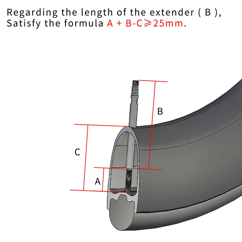 Что касается длины удлинителя (B ), то удовлетворите формулу A B-C ≥ 25 мм.
