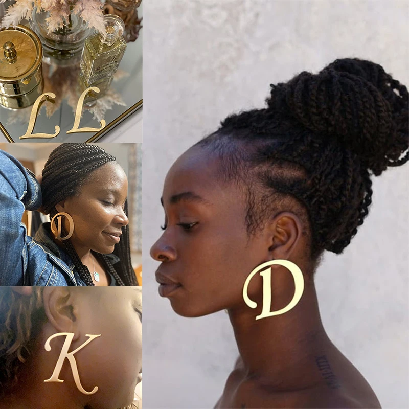 Серьги из нержавеющей стали с индивидуальными инициалами, увеличенн...