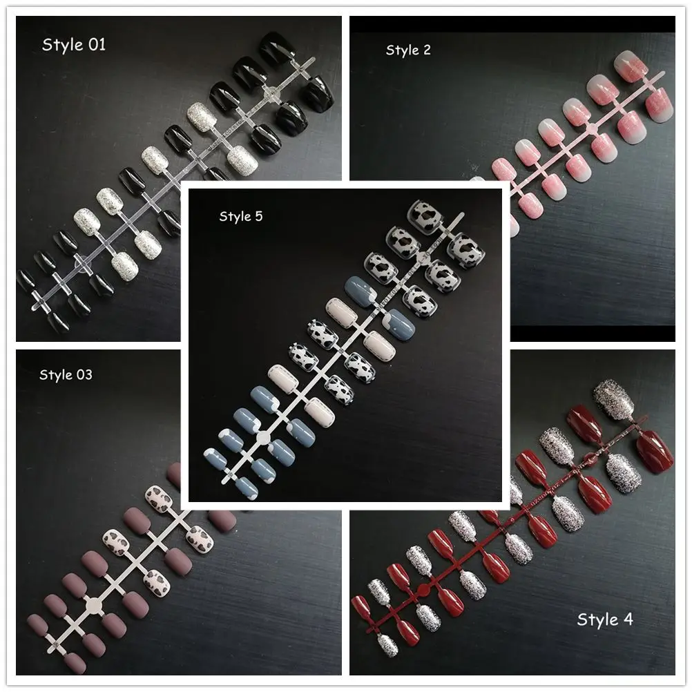Накладные ногти с леопардовым принтом, съемные Акриловые Блестящие квадратные матовые искусственные ногти с полным покрытием, 24 шт.