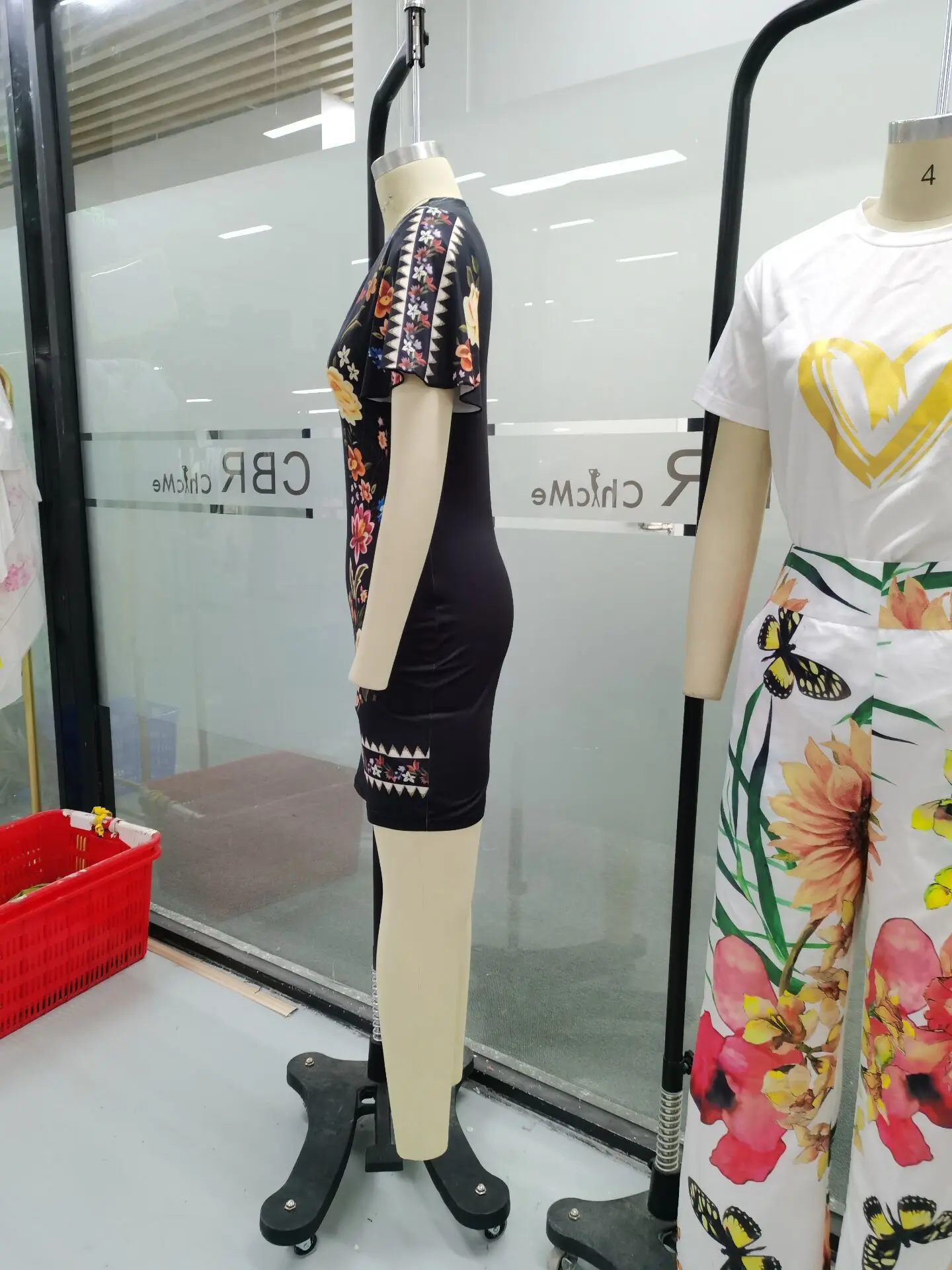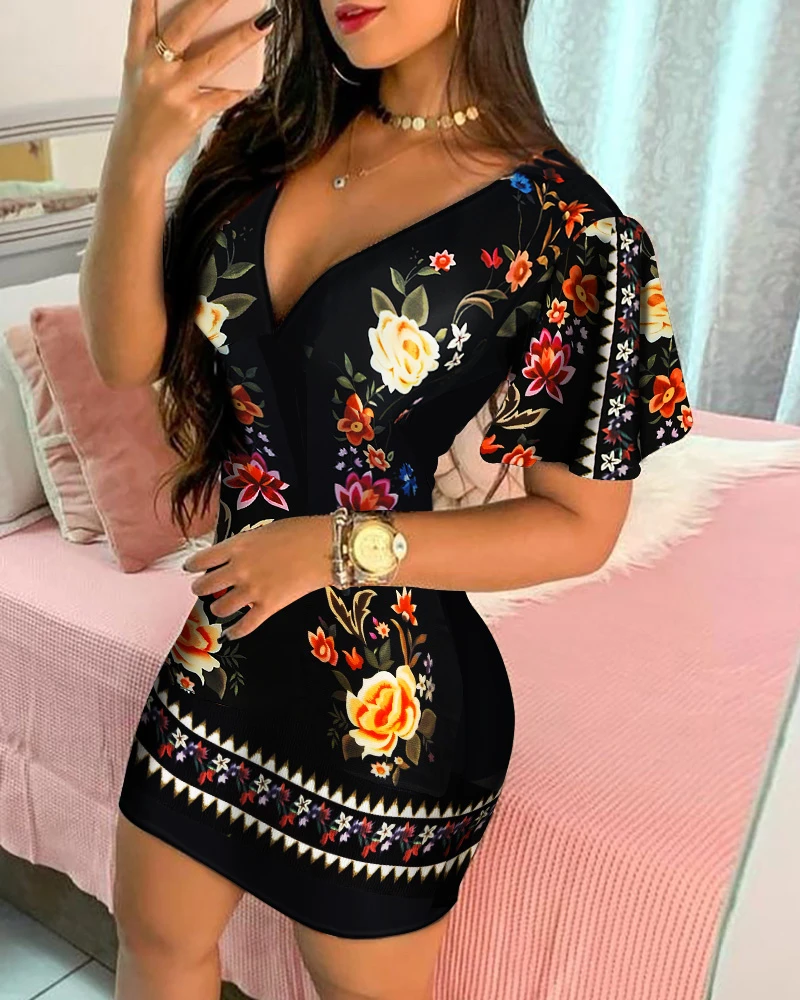 Женское элегантное платье с принтом, облегающее платье с оборками, цепочкой и рукавами с оборками и цветочным принтом, 2021