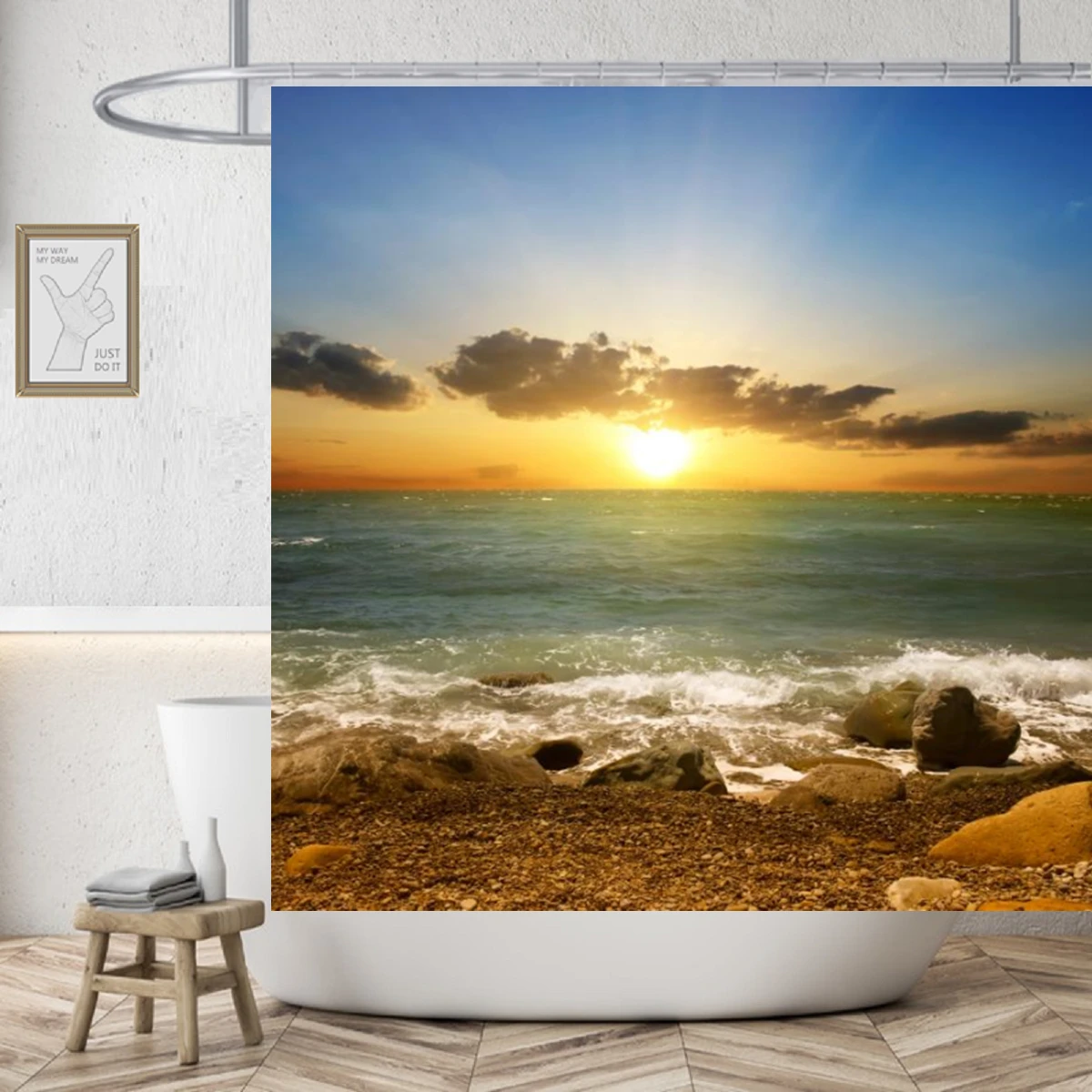 Дельфины плавание закат телефон водонепроницаемый скандинавский стиль здание Иисус полиэстер ткань для ванной Cortinas 180