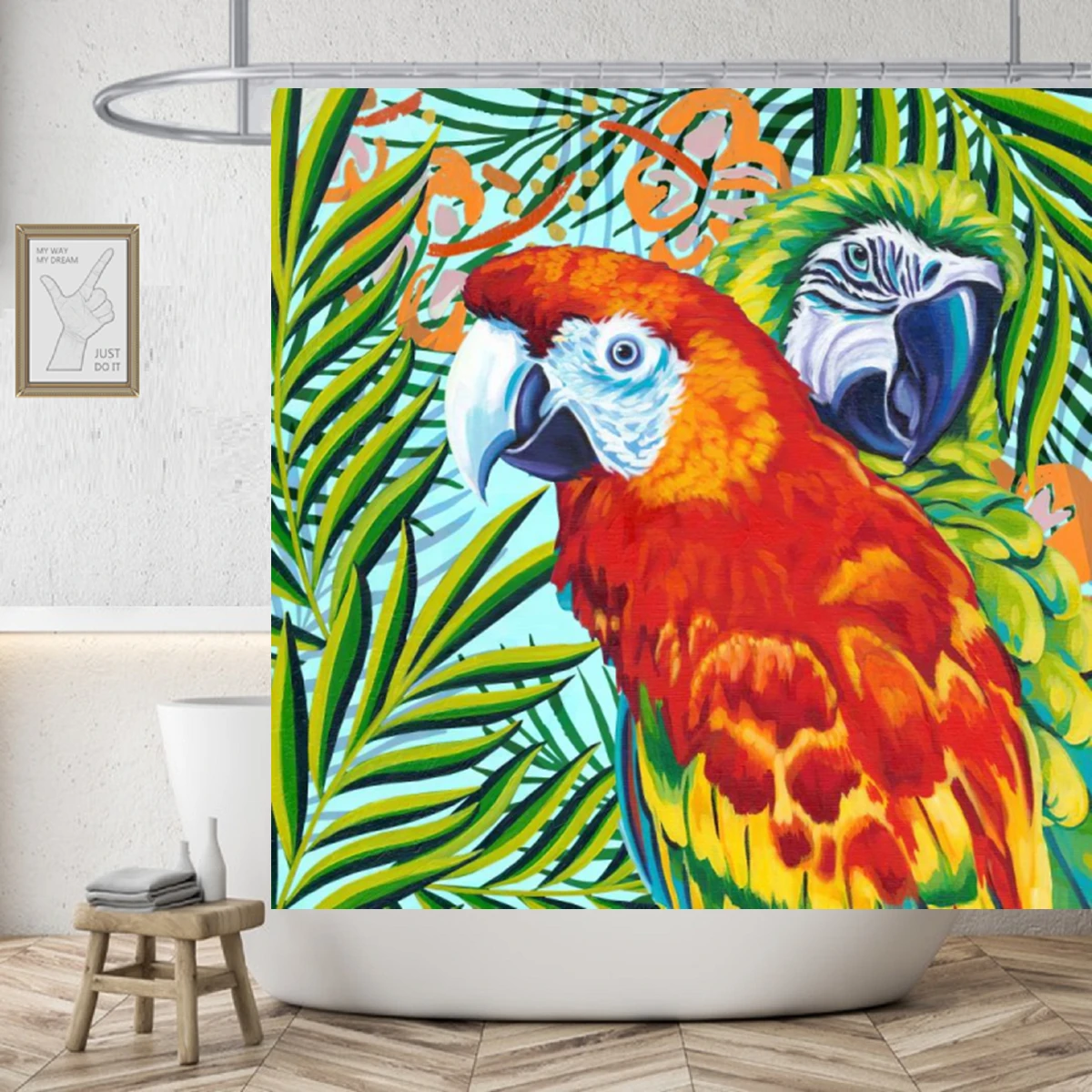 oil-painting bathroom shower curtainGreen Foliage Curtain