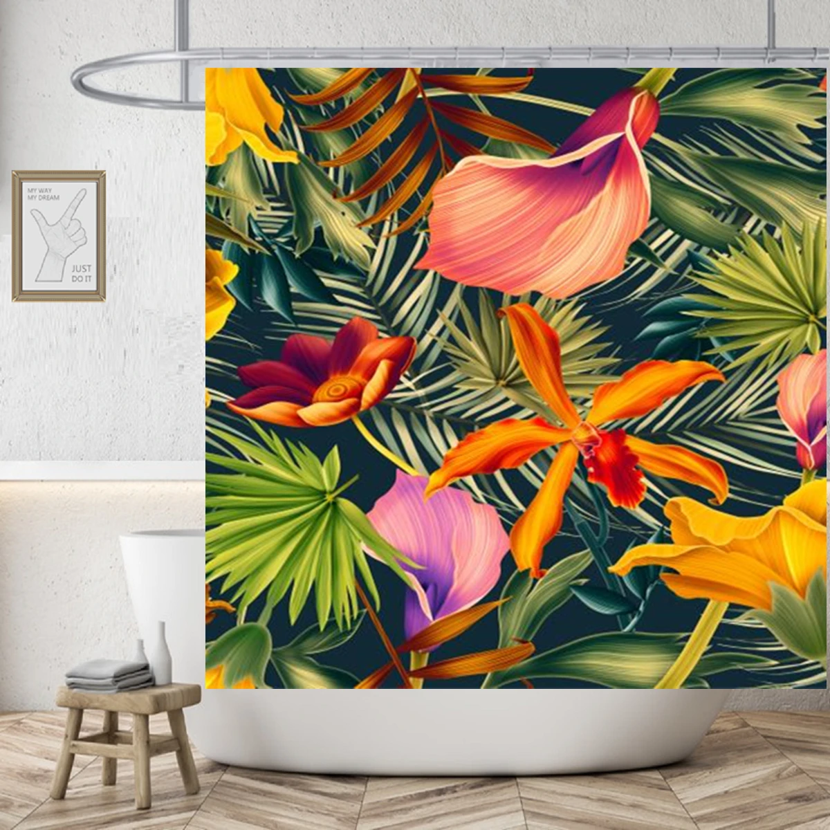 -Изготовлен из 100% высококачественного полиэстера. Водонепроницаемый и устойчивый к плесени. Уникальный дизайн и цифровая печать ярких цветов, которые могут украсить вашу ванную комнату.