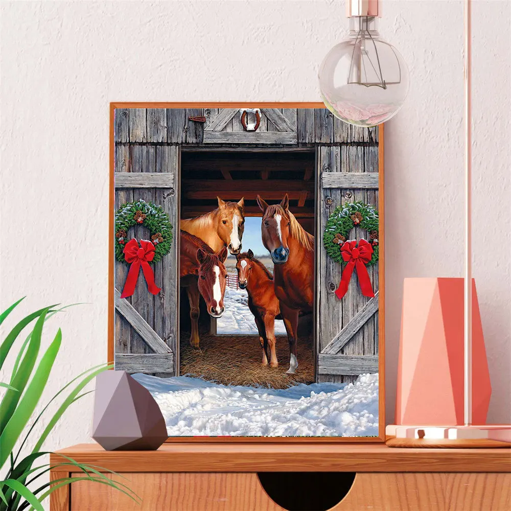 HUACAN полностью квадратная круглая Алмазная Картина лошадь Алмазная вышивка животное картина Стразы мозаика снежное Рождественское украшение