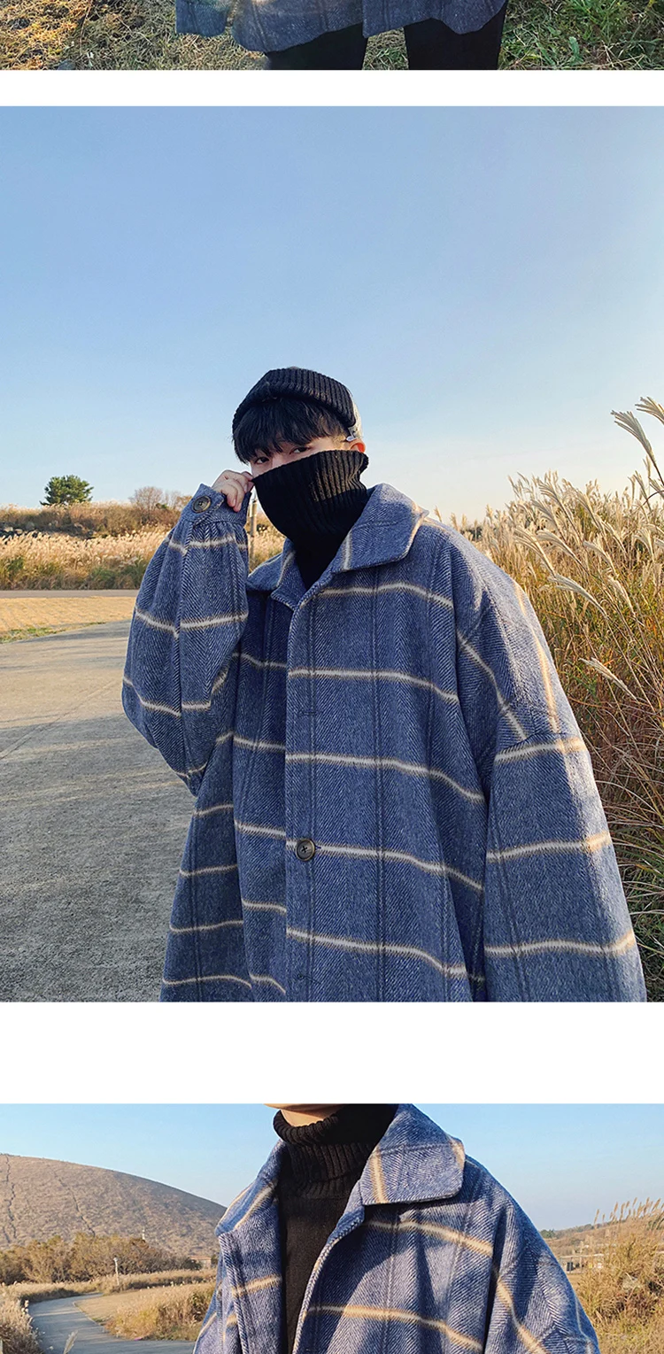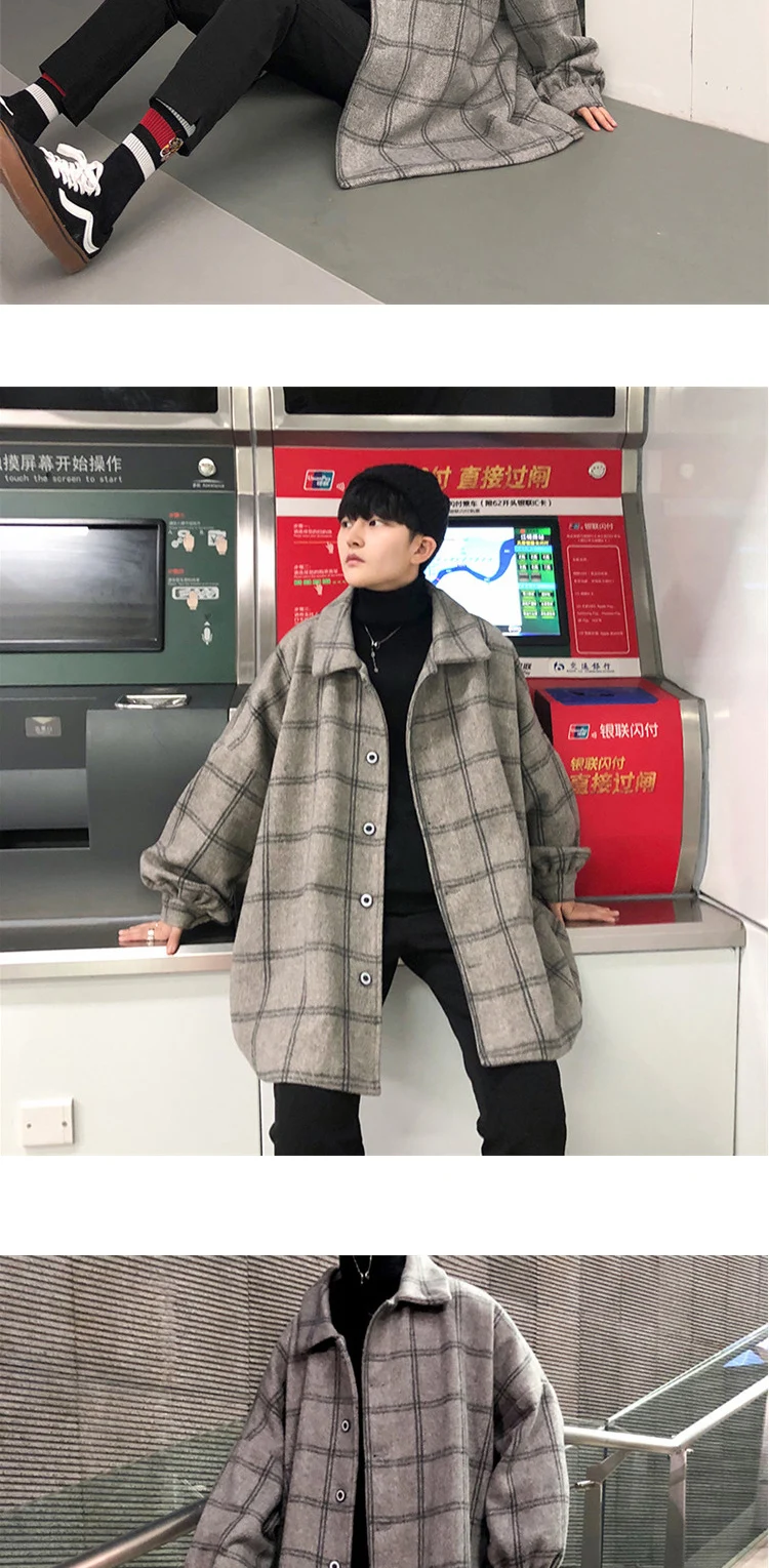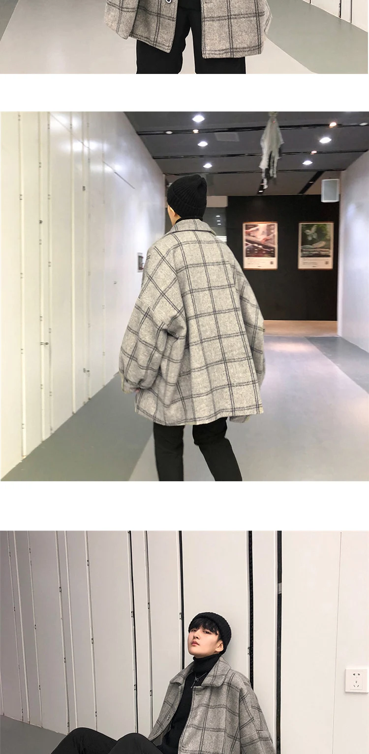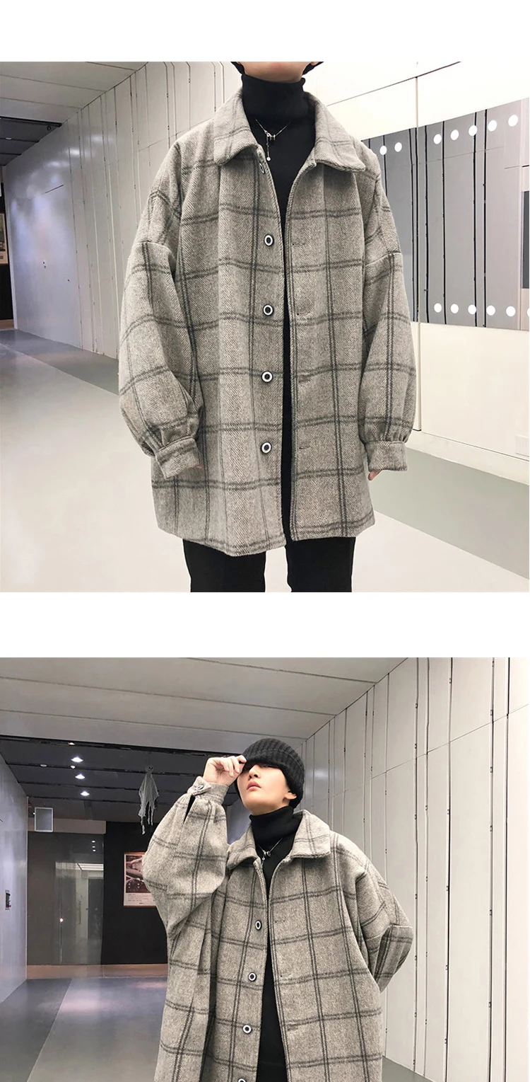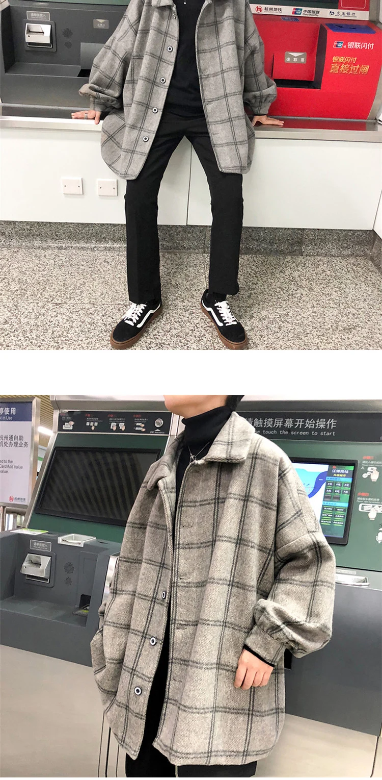 Мужское зимнее пальто Ins, Мужская корейская модная длинная клетчатая ветровка, мужское шерстяное длинное пальто на осень и зиму, Мужское пальто