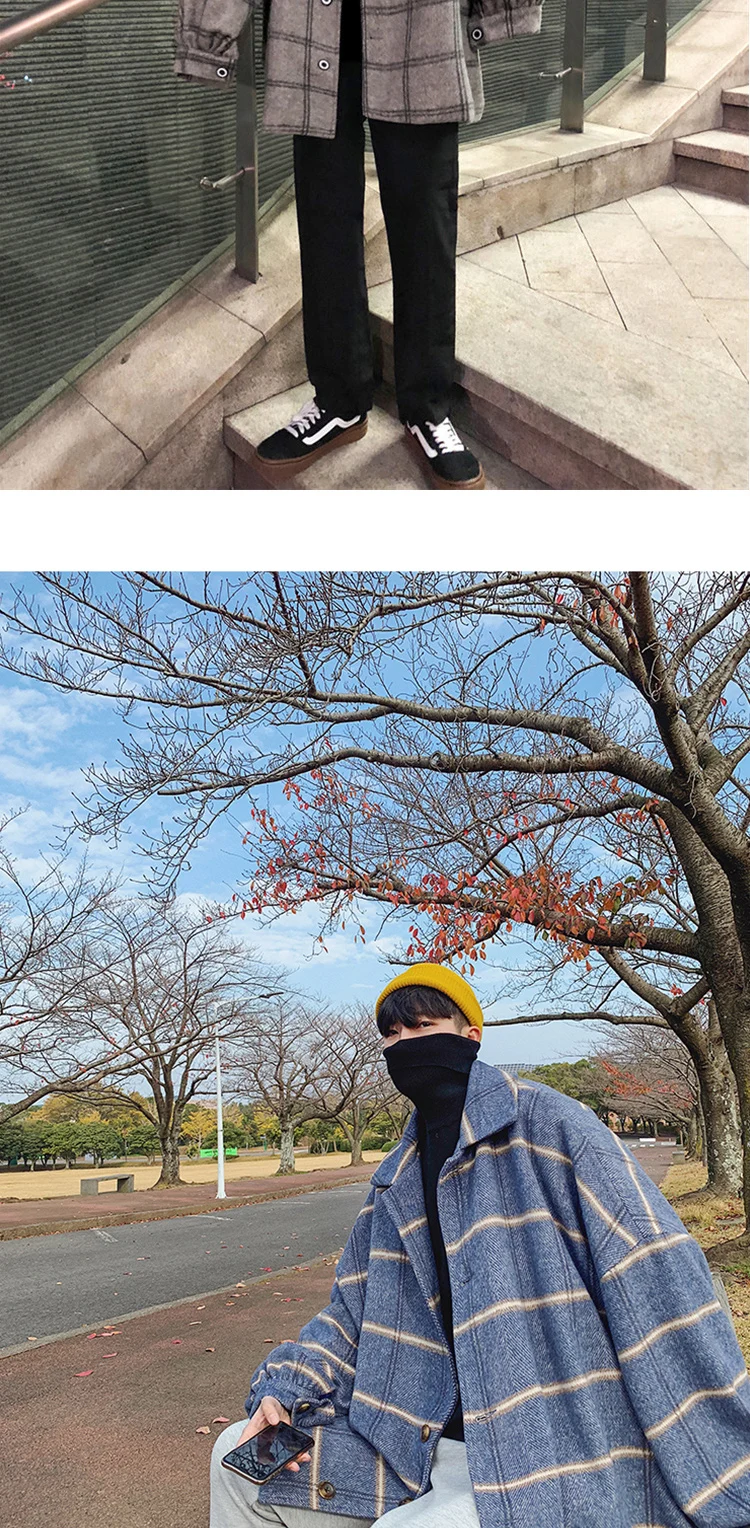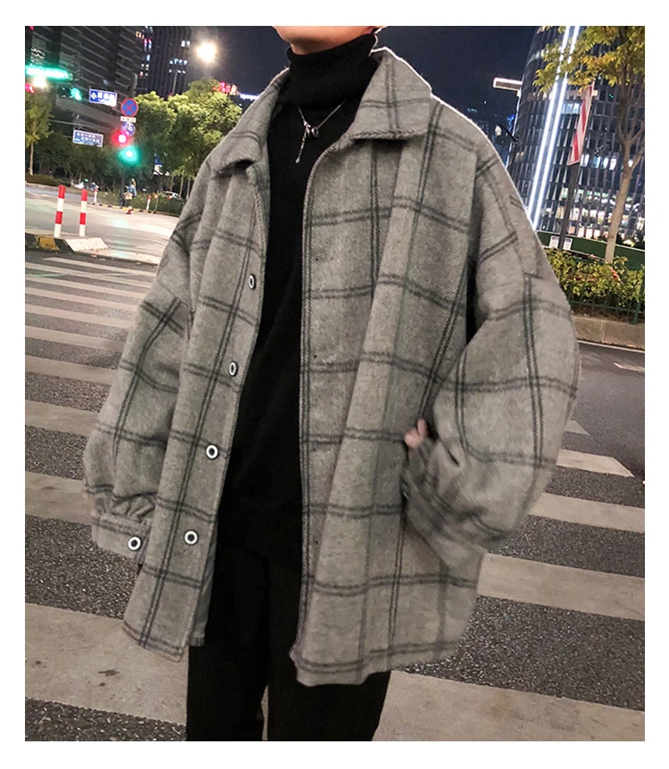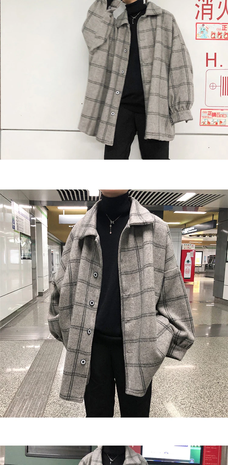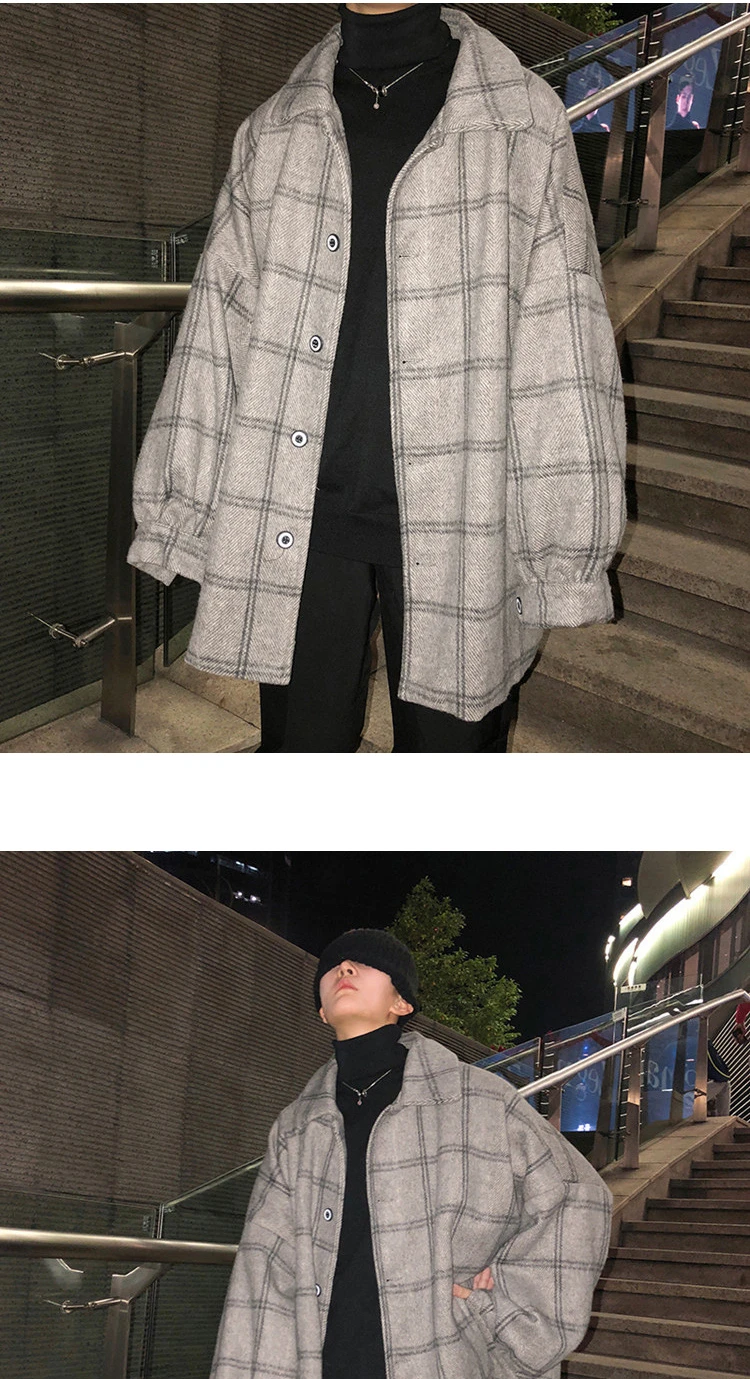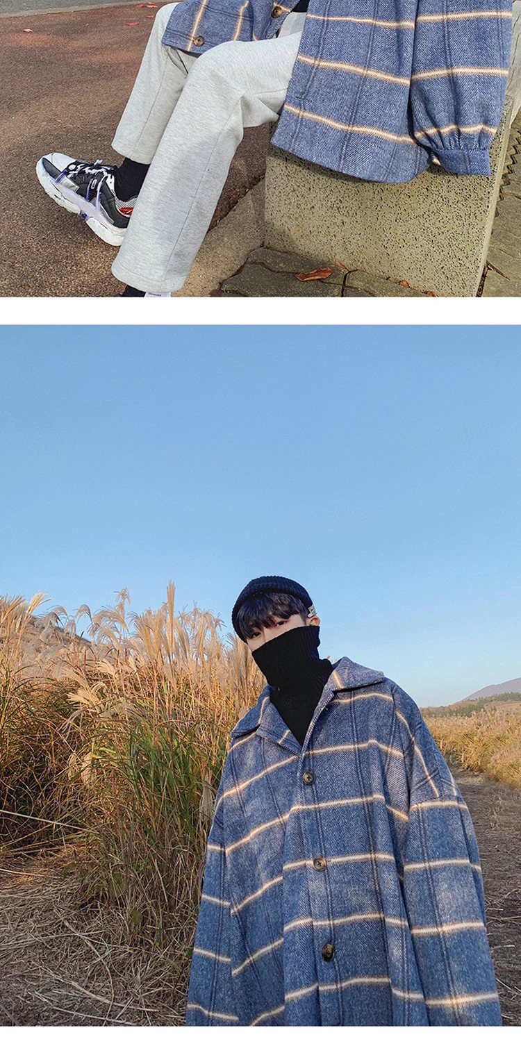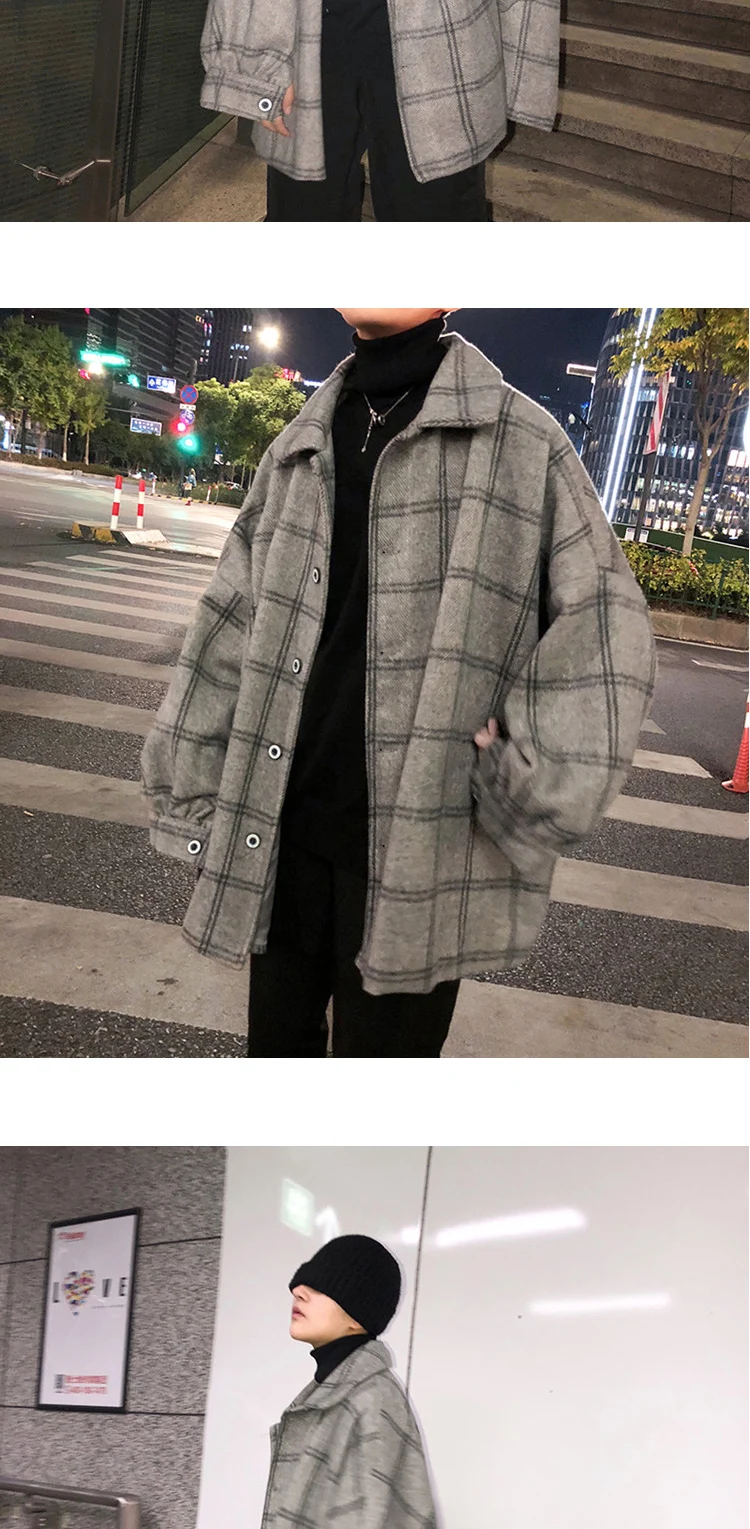 Мужское зимнее пальто Ins, Мужская корейская модная длинная клетчатая ветровка, мужское шерстяное длинное пальто на осень и зиму, Мужское пальто
