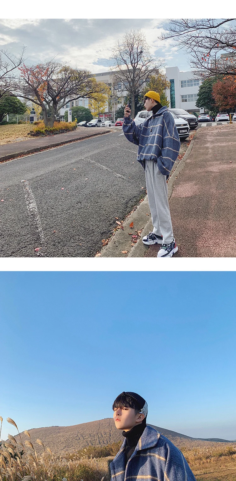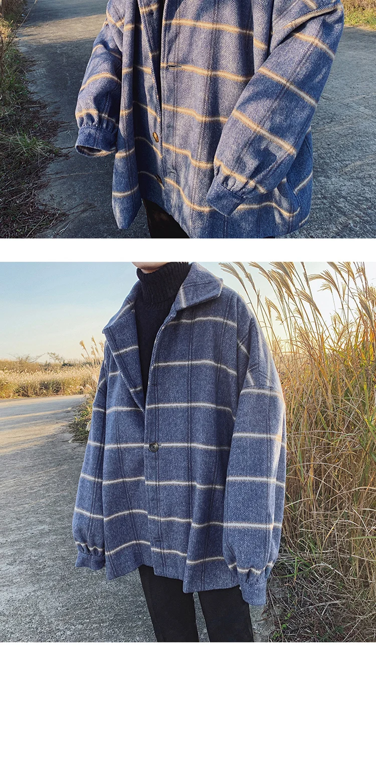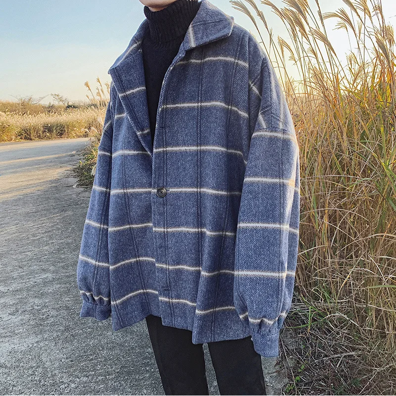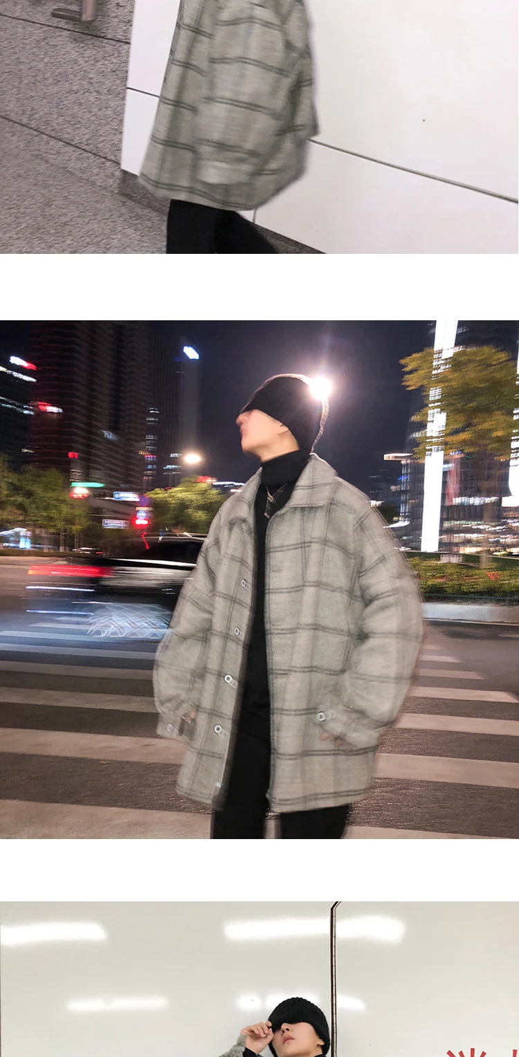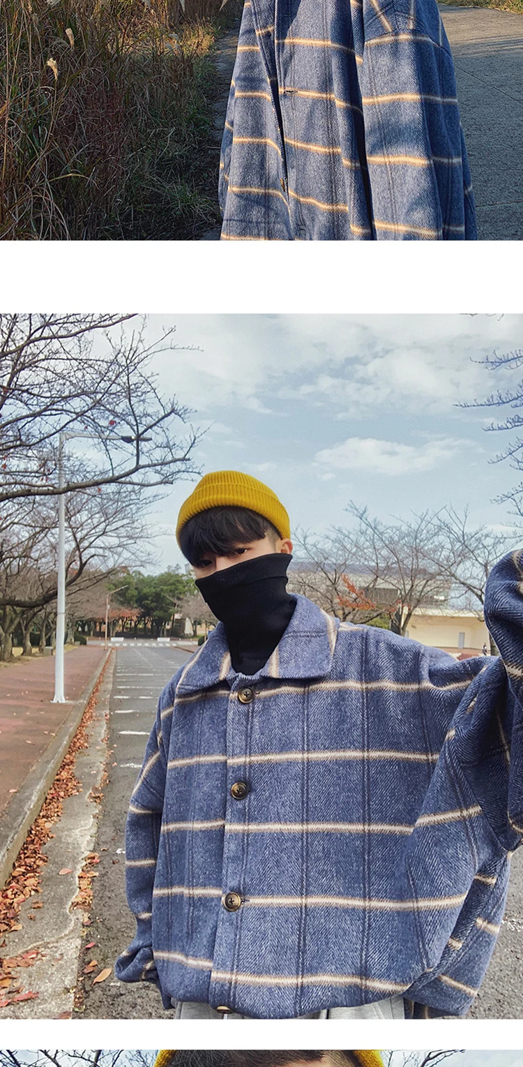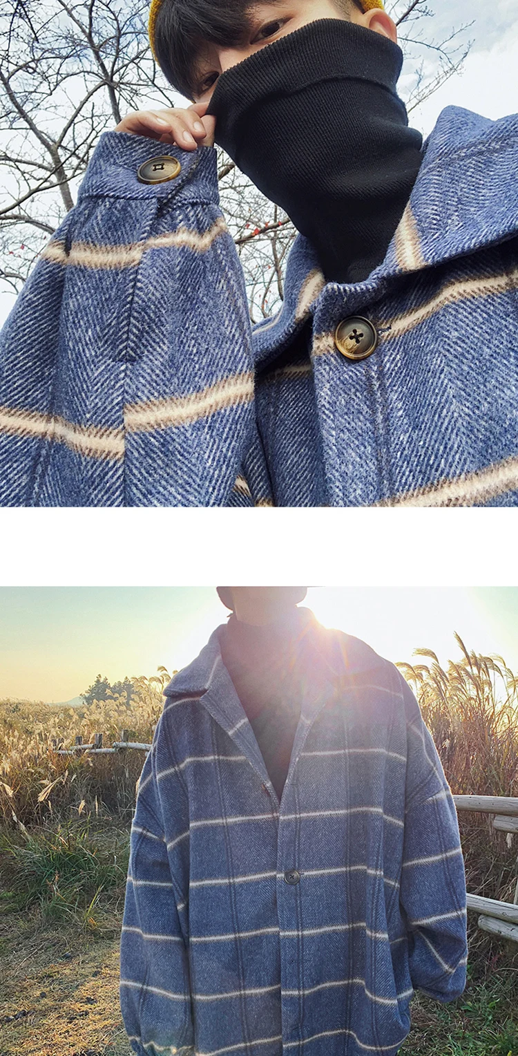 Мужское зимнее пальто Ins, Мужская корейская модная длинная клетчатая ветровка, мужское шерстяное длинное пальто на осень и зиму, Мужское пальто