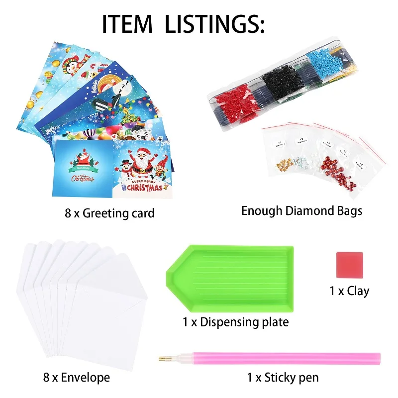 8 шт. в наборе, алмазная живопись, поздравительные открытки, Мультяшные рождественские открытки на день рождения, 5D сделай сам, детские праздничные открытки с вышивкой, подарок