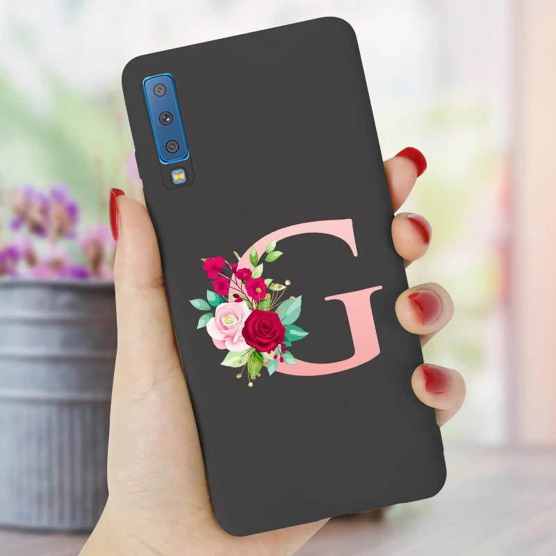 Чехол-накладка для Samsung A7 2018, силикон, ТПУ, с буквами и именем на заказ