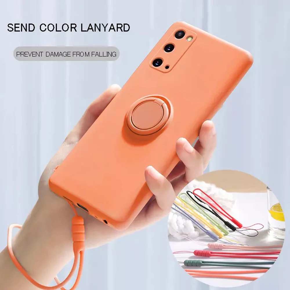 Чехол с кольцом-держателем из жидкого силикона для Xiaomi POCO F3 X3 Pro 10T Pro 11 Redmi Note 10 Pro 10S 9 Pro, мягкий чехол для телефона с ремешком