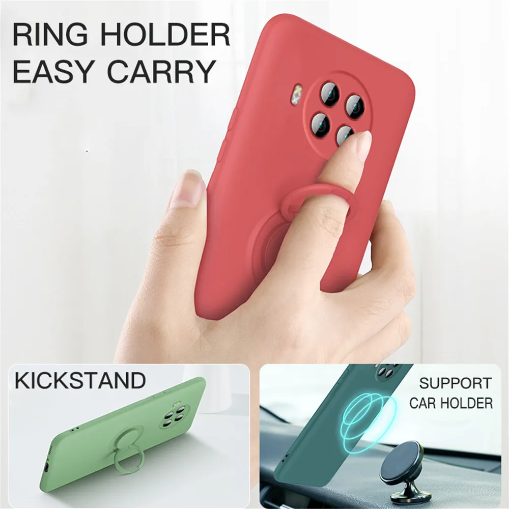 Жидкий силиконовый чехол с кольцом-держателем для Huawei P40 P30 P2...