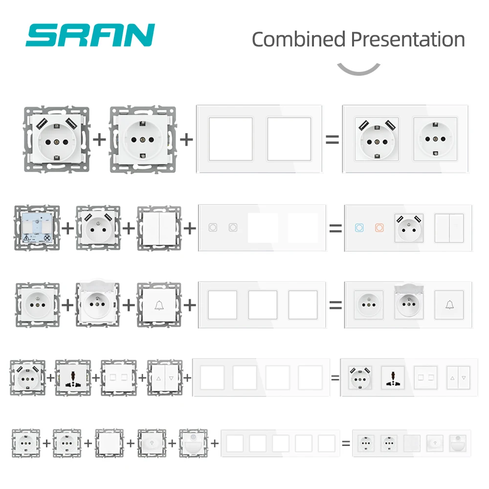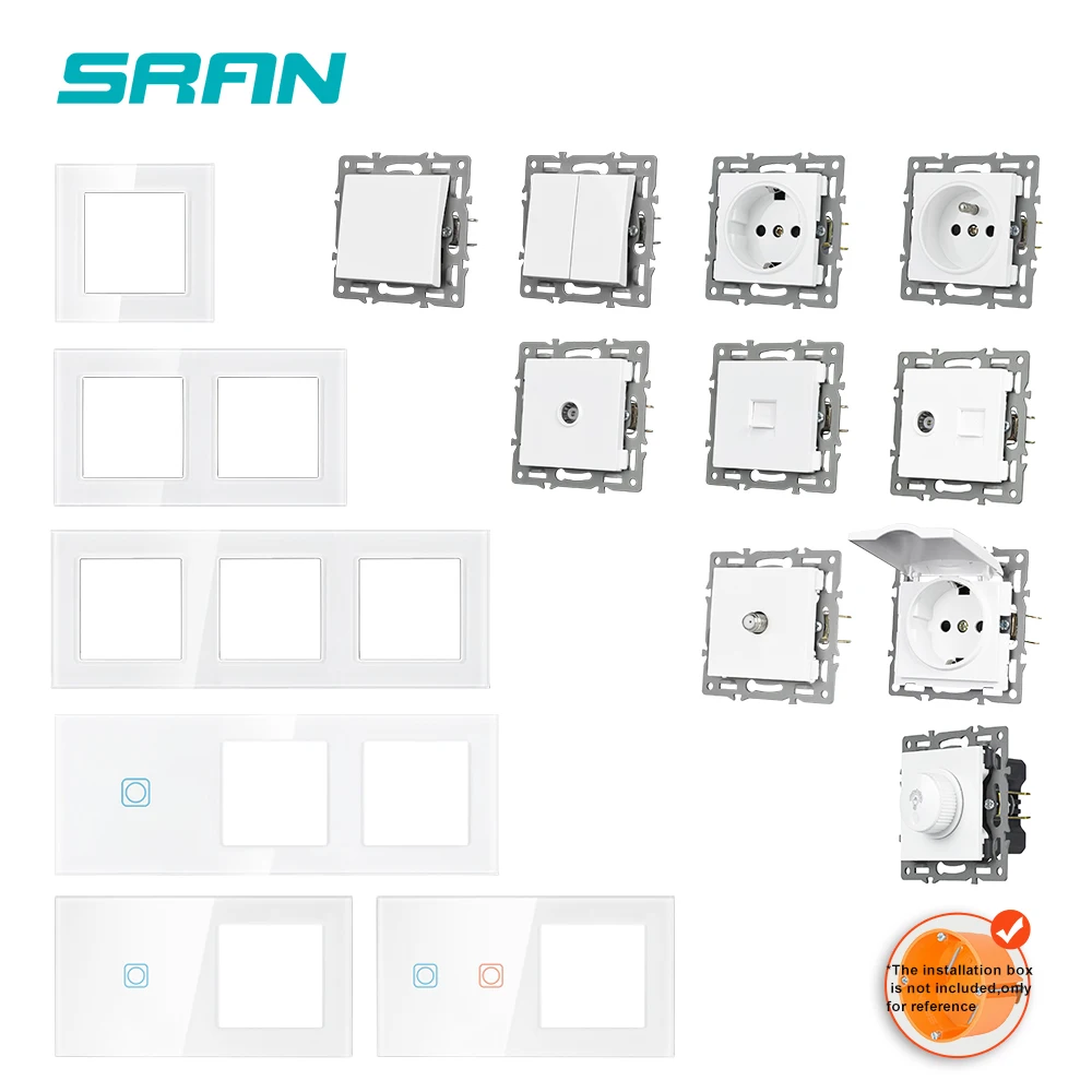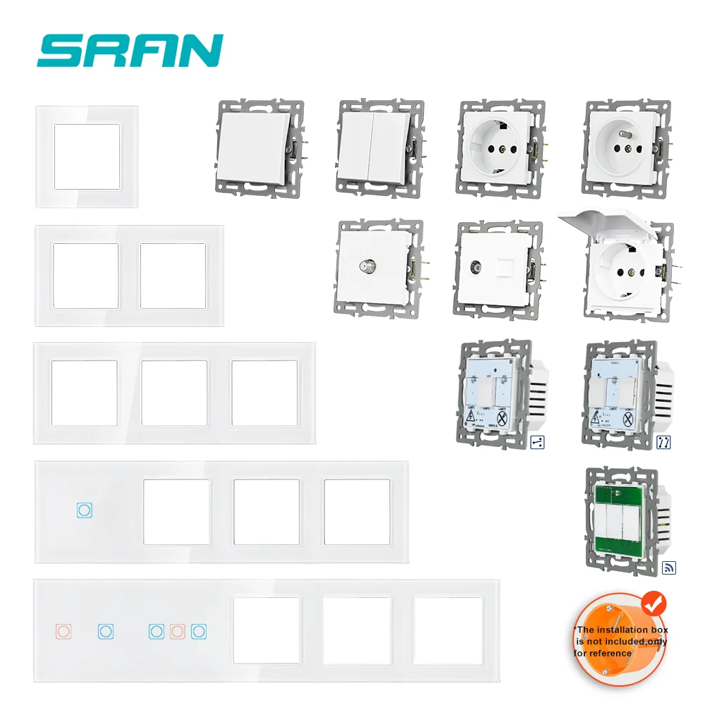 Панельный светильник ель света SRAN F6 из закаленного стекла, настенная розетка с французским стандартом ЕС, usb tv, rj45, rj11, сенсорный модуль переключателя сделай сам, белый цвет