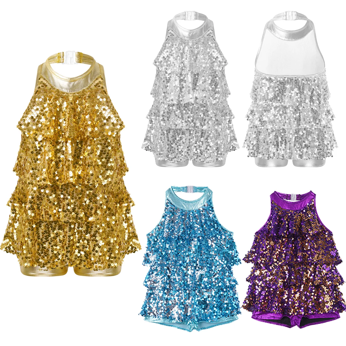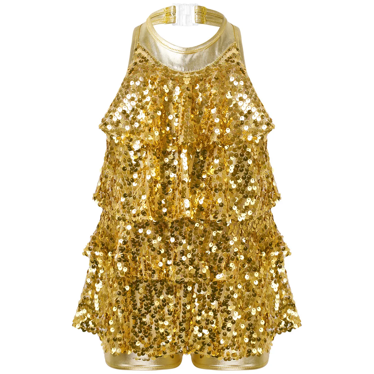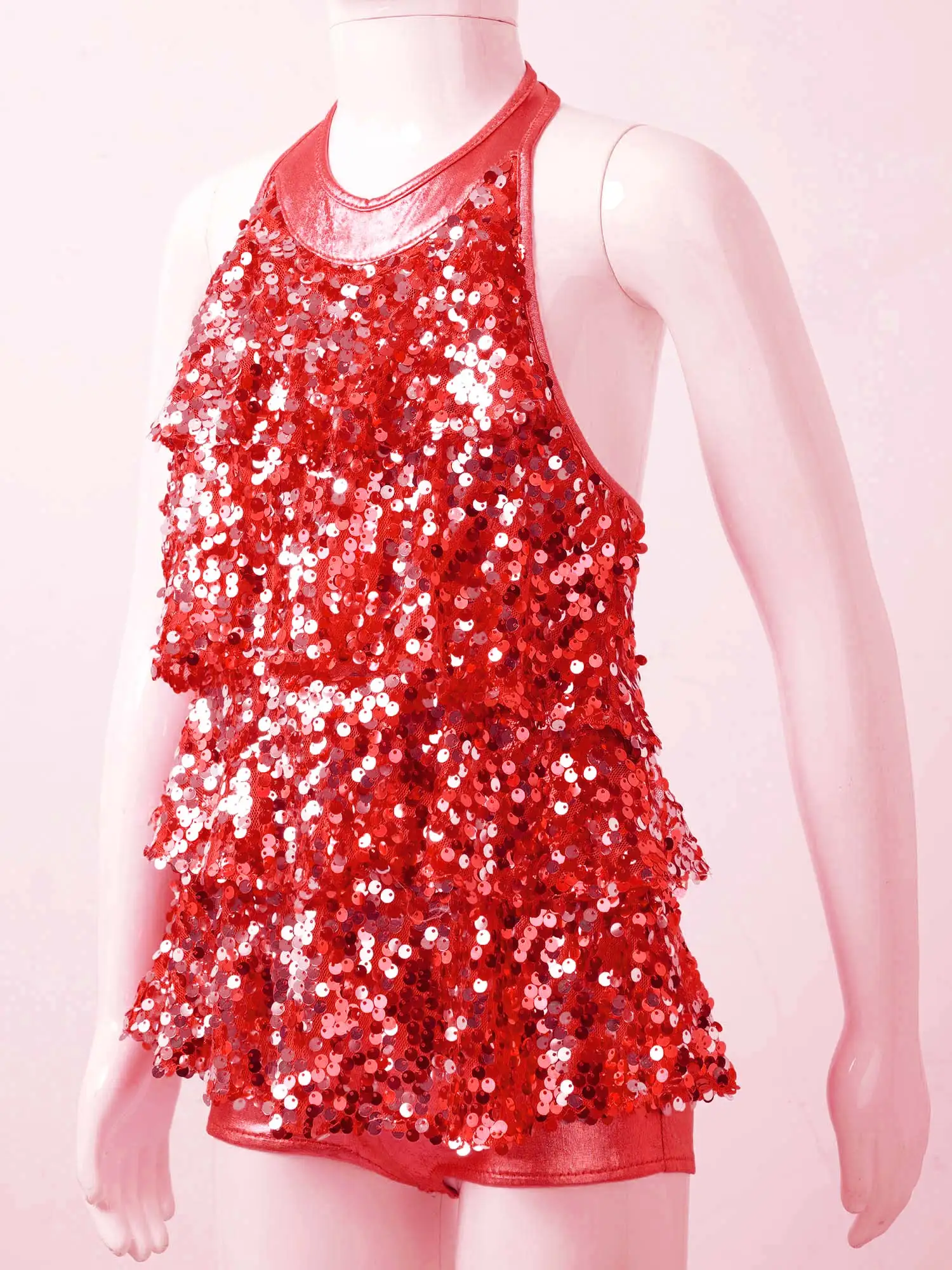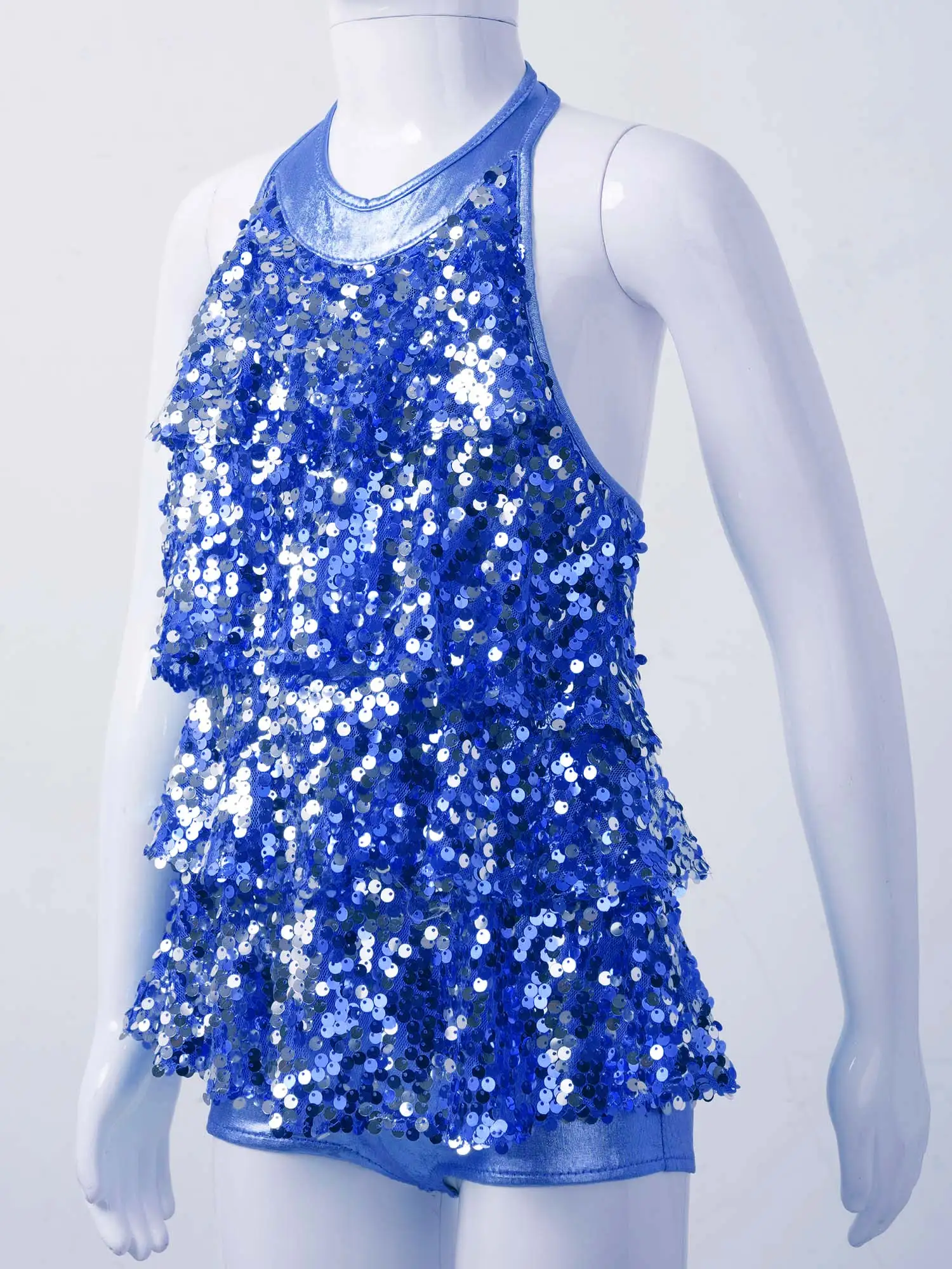 4-16 дети девочки Холтер Блестящий блёстки балетный танец коротышка ЮНИТАР платье Дети Современный Джаз танцевальные костюмы