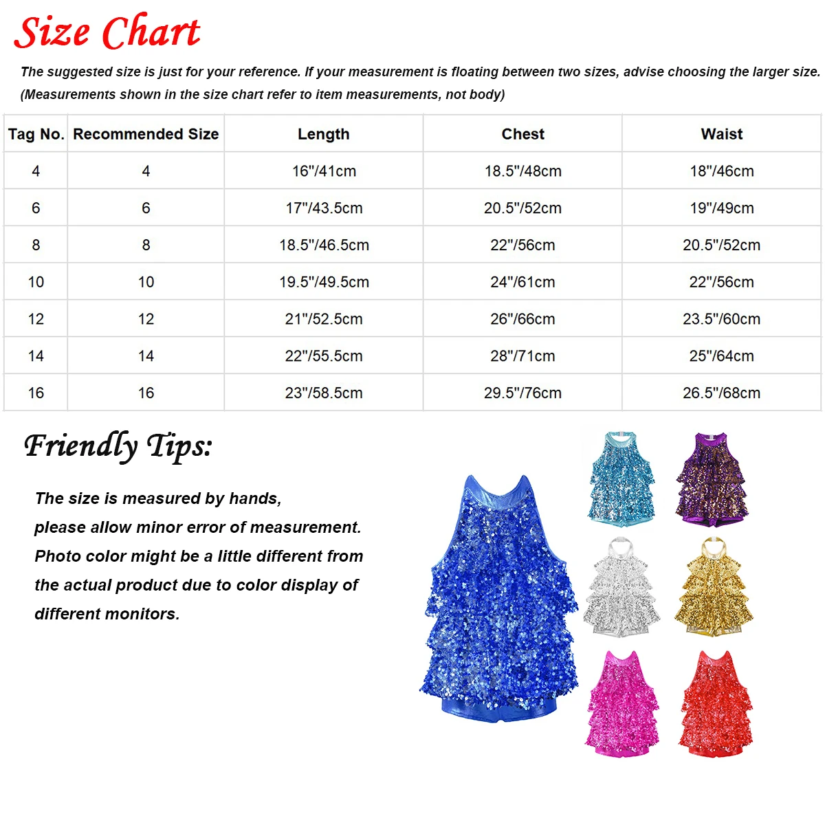 Особенности:Танцевальный Костюм изготовлен из полиэстера и блестящего материала, ручная стирка.Таблица размеров означает возраст для девочек, но только для общего руководства.Вырез на шее с застежкой. Открытая верхняя часть спины. Короткое платье, украшенное многослойной сеткой с блестками.Приятный для кожи фарик, дышащий и удобный в носке. Красивая и блестящая Одежда для танцев для вашей принцессы.Подходит для балета, латины, джаза, современного танца или сцены и т. д.