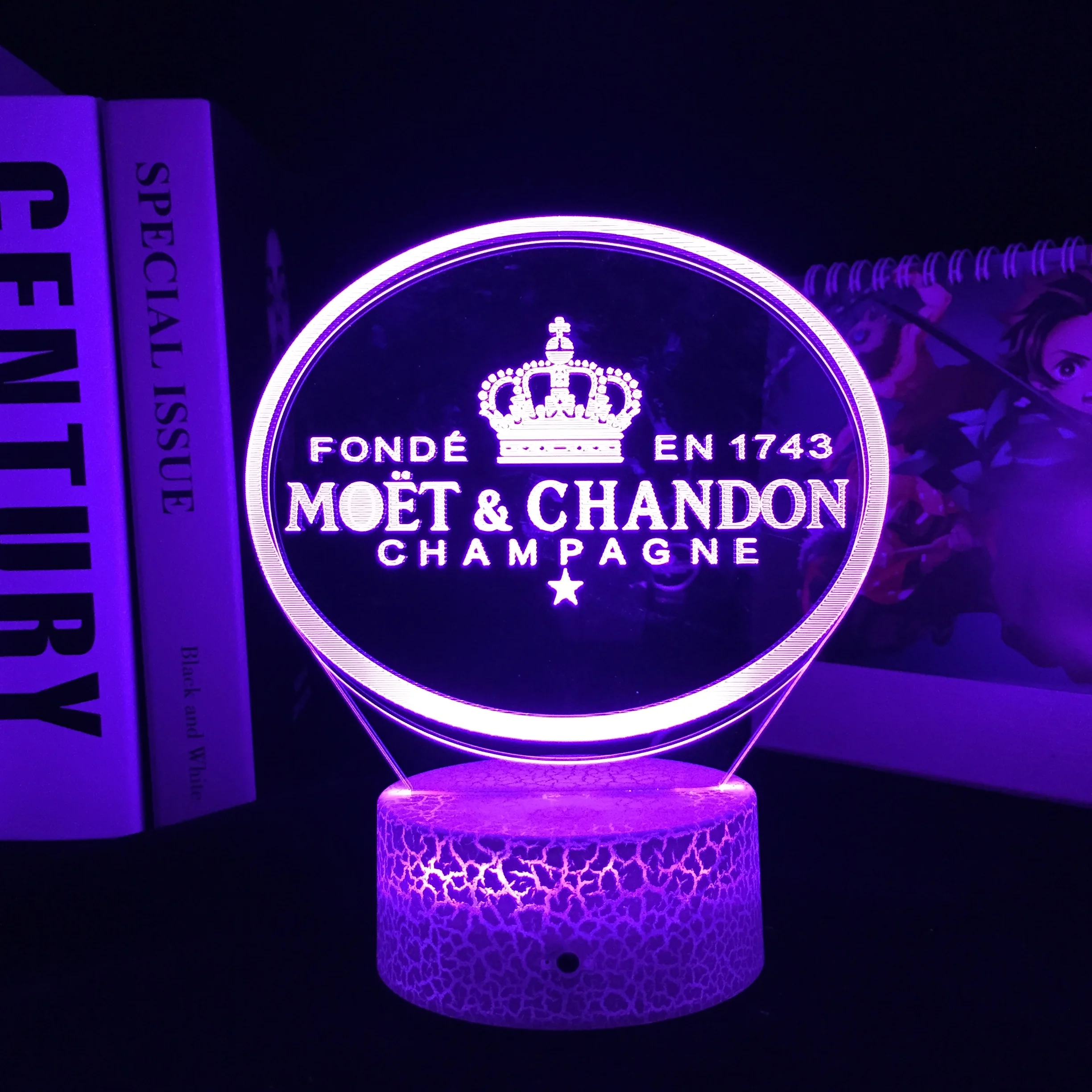 Moet & Chandon ночной Светильник 3D светодиодный на батарейках Светодиодный Ночник светильник для бара декор комнаты изменение цвета настольная лампа