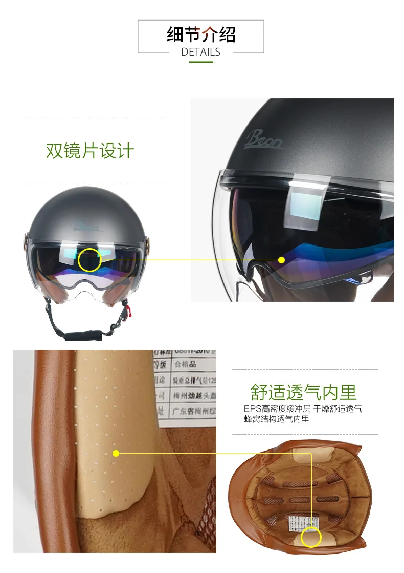Мотоциклетный шлем BEON с двойными линзами, зима 34, ретро, автомобильные шлемы, для мужчин и женщин, мотоциклетные шлемы, Casco, козырек в подарок