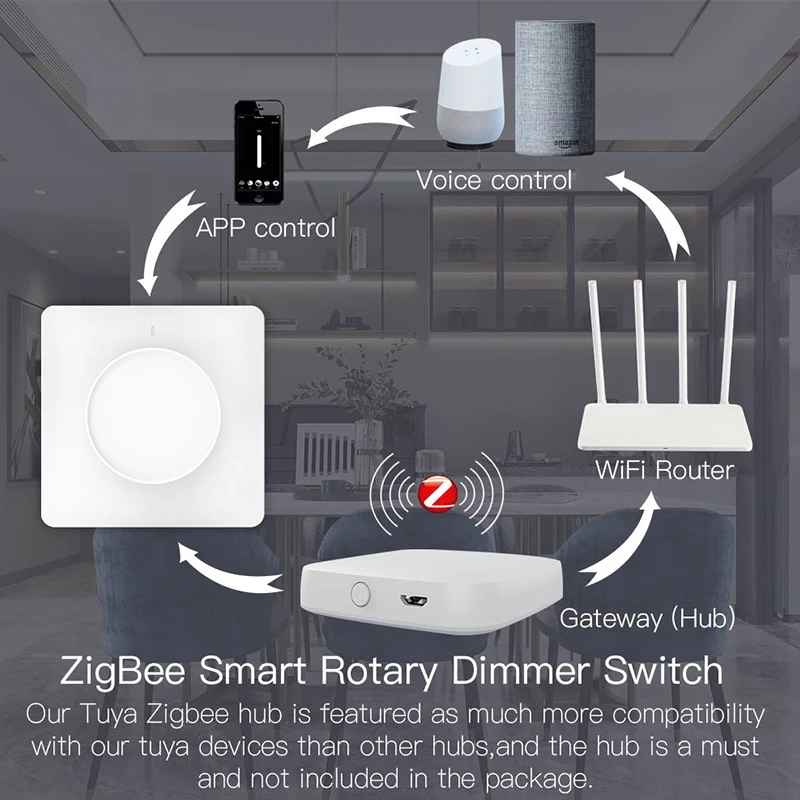 Умный роторный регулятор яркости света ZigBee, wi-fi переключатель с дистанционным управлением, работает с Alexa Google EU