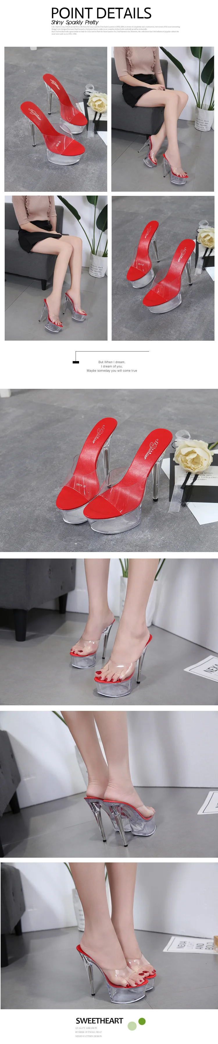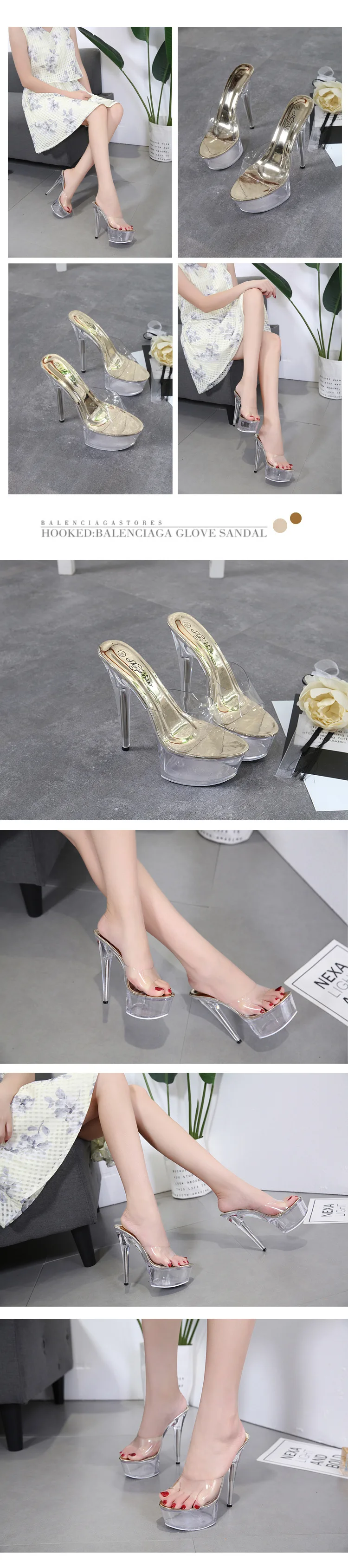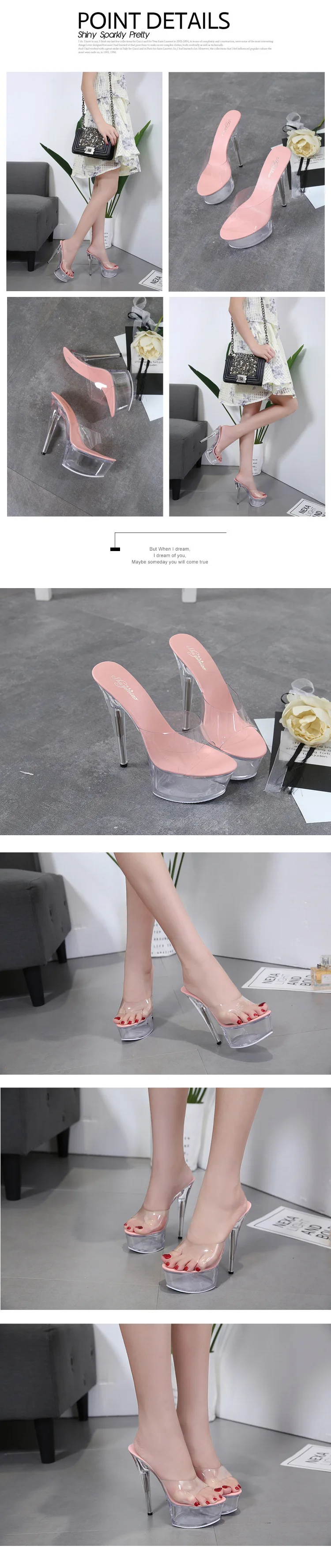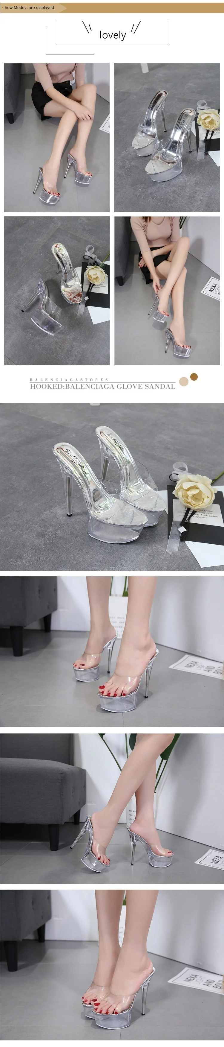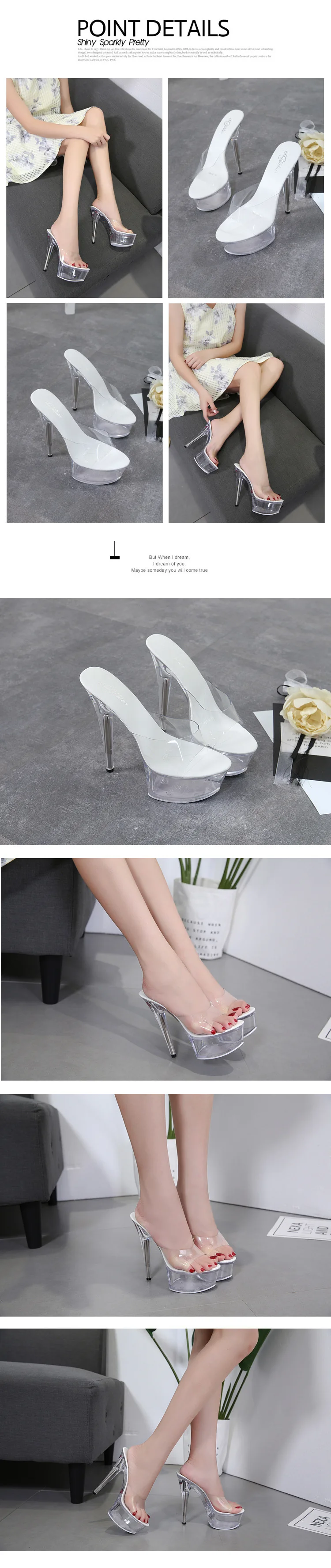 Сандалии Voesnees женские, пикантные прозрачные туфли с кристаллами, на высоком каблуке 15 см, водостойкие, для подиума