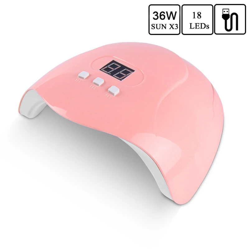 Сушилка для ногтей быстросохнущая розовая, 36 Вт, УФ светодиодный лампа для отверждения гель-лака для ногтей, 18 светодиодный с автоматическим датчиком, машинка для маникюра, инструменты для дизайна ногтей с USB