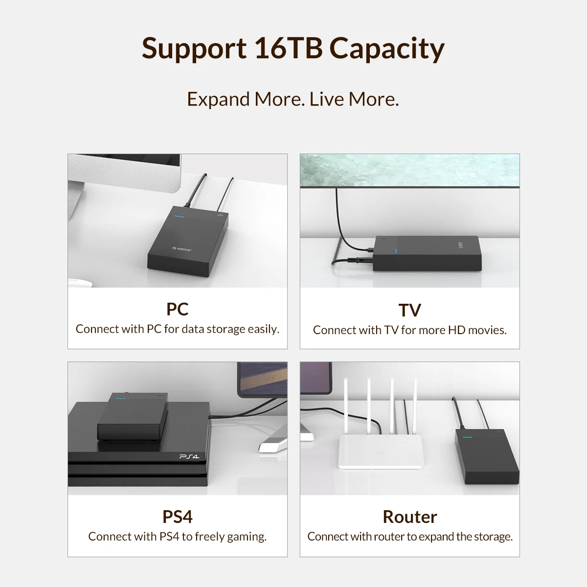 ORICO 3588US3 3,5 дюймов жёсткий диск или поддерживающий корпус может поддерживать почти любой 3,5 дюймов SATA I, SATA II жесткий диск SATA III или твердотельный накопитель до максимальной скорости 18 ТБ!Данное устройство совместимо с большинством операционных систем, включая Windows, Macintosh, Linux и Unix, работающие на настольных компьютерах или ноутбуках.На 70% быстрее, чем традиционный USB 3,0 с протоколом передачи UASP.Протокол SCSI USB только ускоряет скорость чтения и записи жесткого диска SSD.