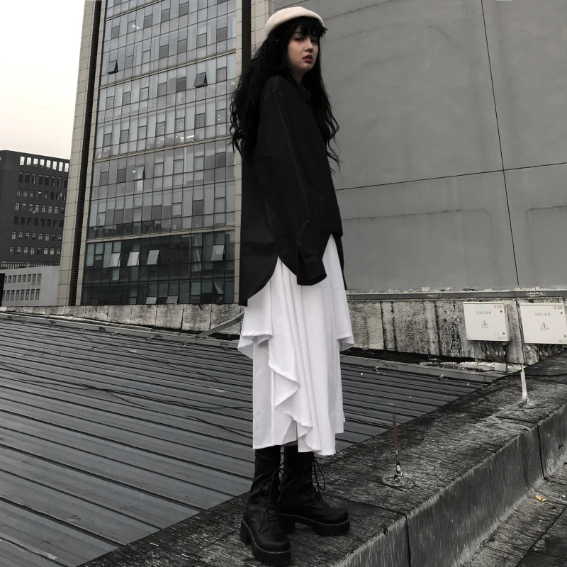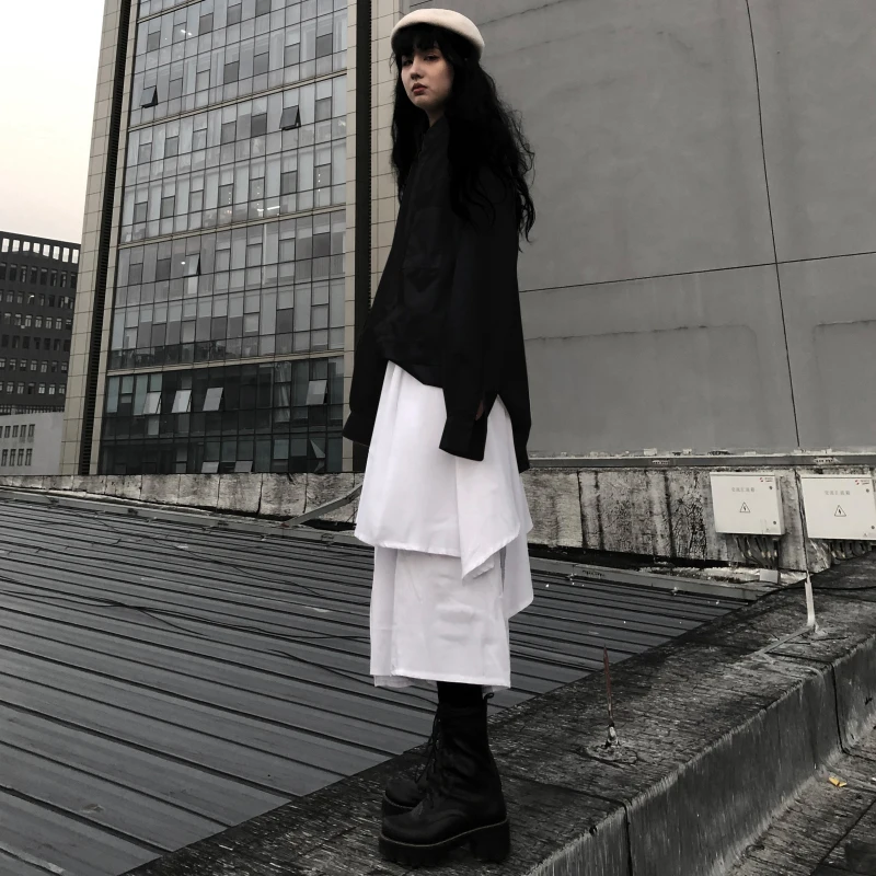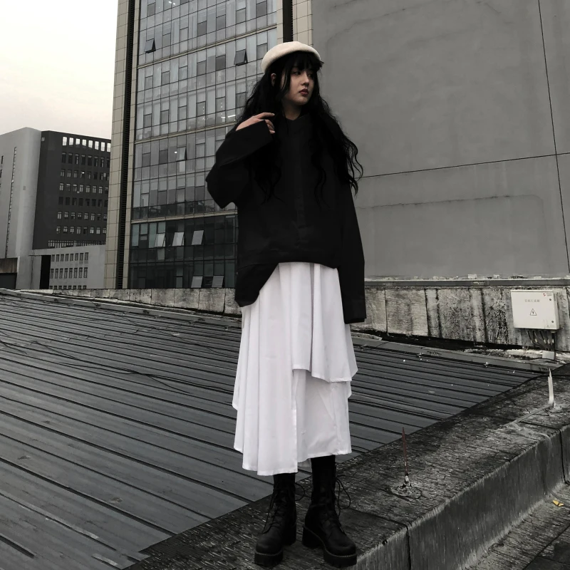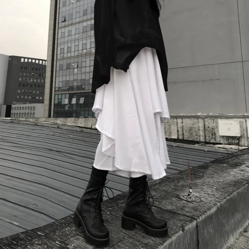Женская модная юбка на весну и осень, новая однотонная Асимметричная юбка небольшого размера с высокой талией
