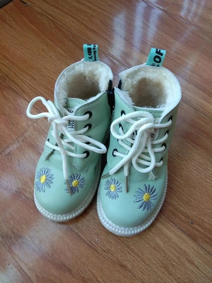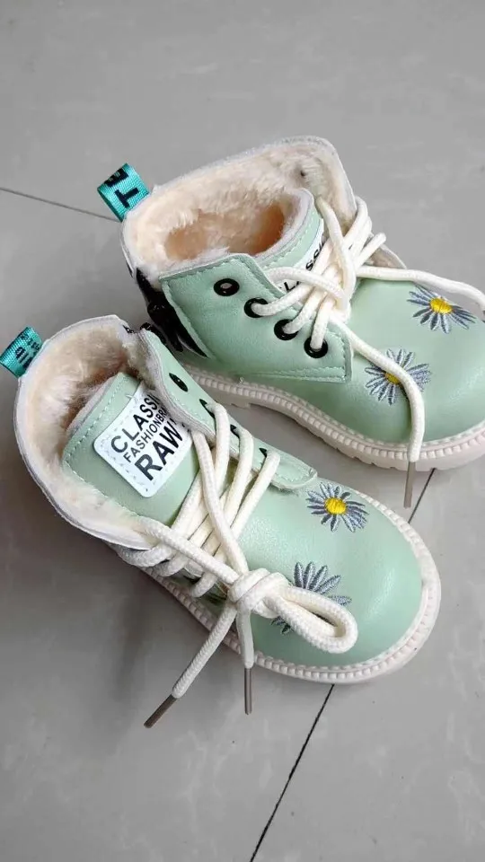 Детские зимние плюшевые ботинки, теплые Нескользящие модные ботинки из искусственной кожи для мальчиков и девочек, милые мягкие осенние ботинки на молнии с цветочным принтом для детей 21-30 лет