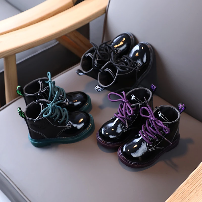Детские Ботинки Martin, осенние ботинки для девочек из лакированной...