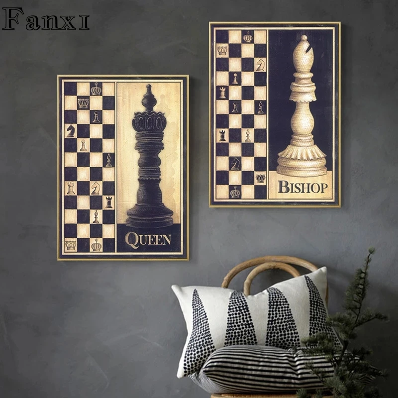 Шахматная Картина на холсте, настенное искусство, картина для гостиной, плакат, украшение, картина без рамки, ретро и Ностальгический принт, настенное искусство