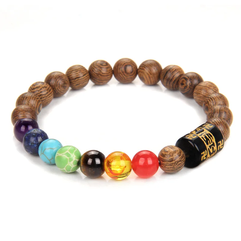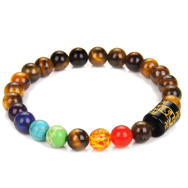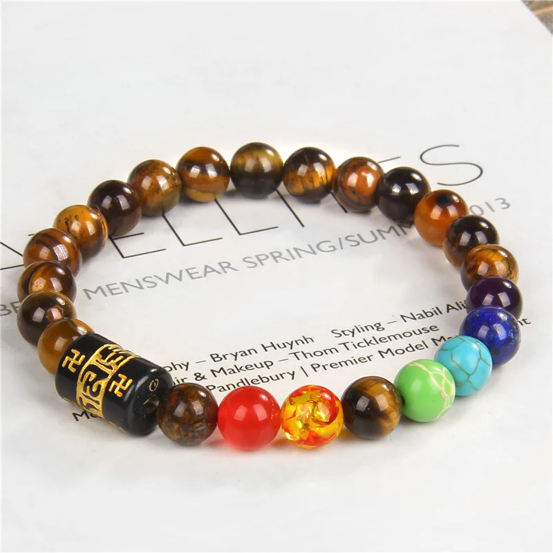 Женскиймужской браслет с бусинами, 7 чакр, 8 мм
