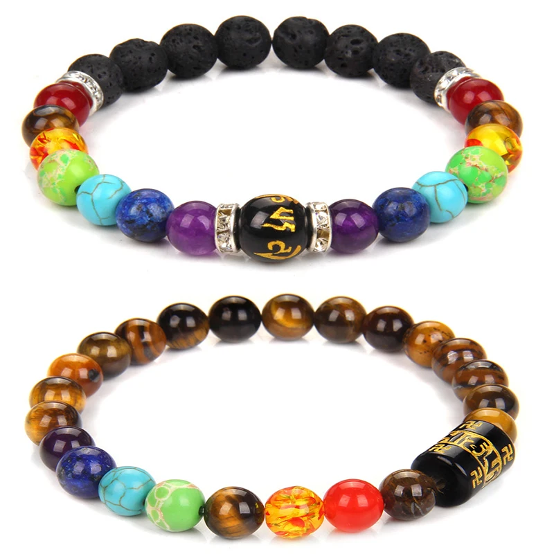 Reiki 7 Чакра исцеляющий браслет из бисера натуральный Лава камень тигровый глаз бисер браслет 8 мм Йога браслеты для молитв женские и мужские ювелирные изделия