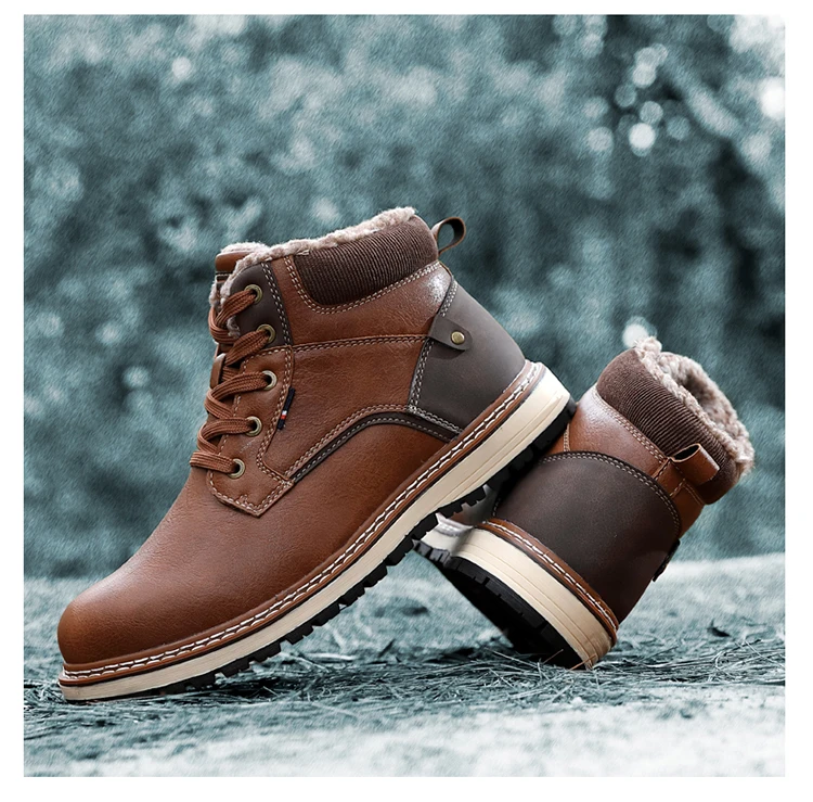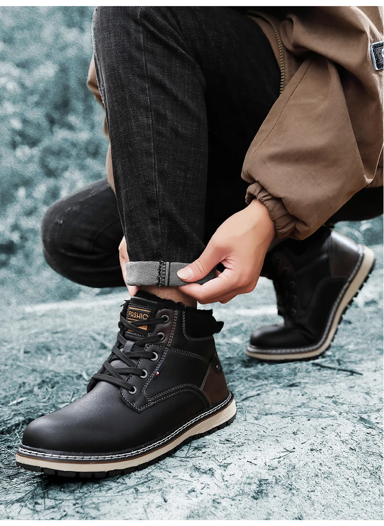 Мужские ботинки Martin; Модная зимняя хлопковая обувь; Водонепроницаемые рабочие зимние ботинки из толстого плюша; Кожаная мужская обувь с высоким берцем; 2021