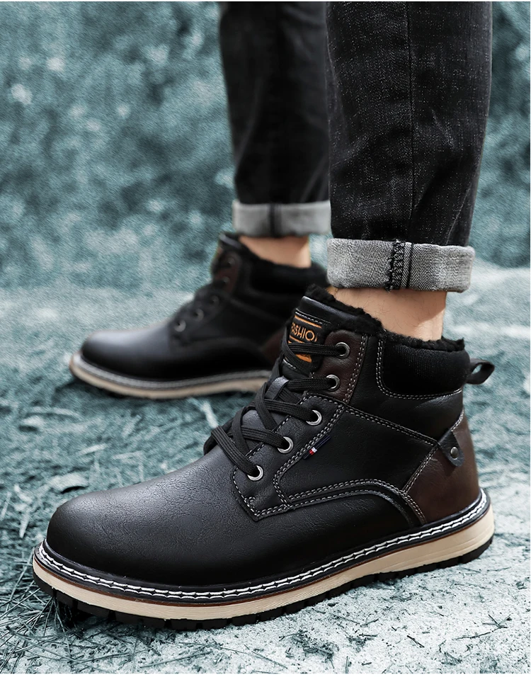 Мужские ботинки Martin, модная зимняя обувь из хлопка, водонепроницаемые рабочие толстые плюшевые зимние ботинки, кожаная мужская обувь SaftyHigh-top 2021